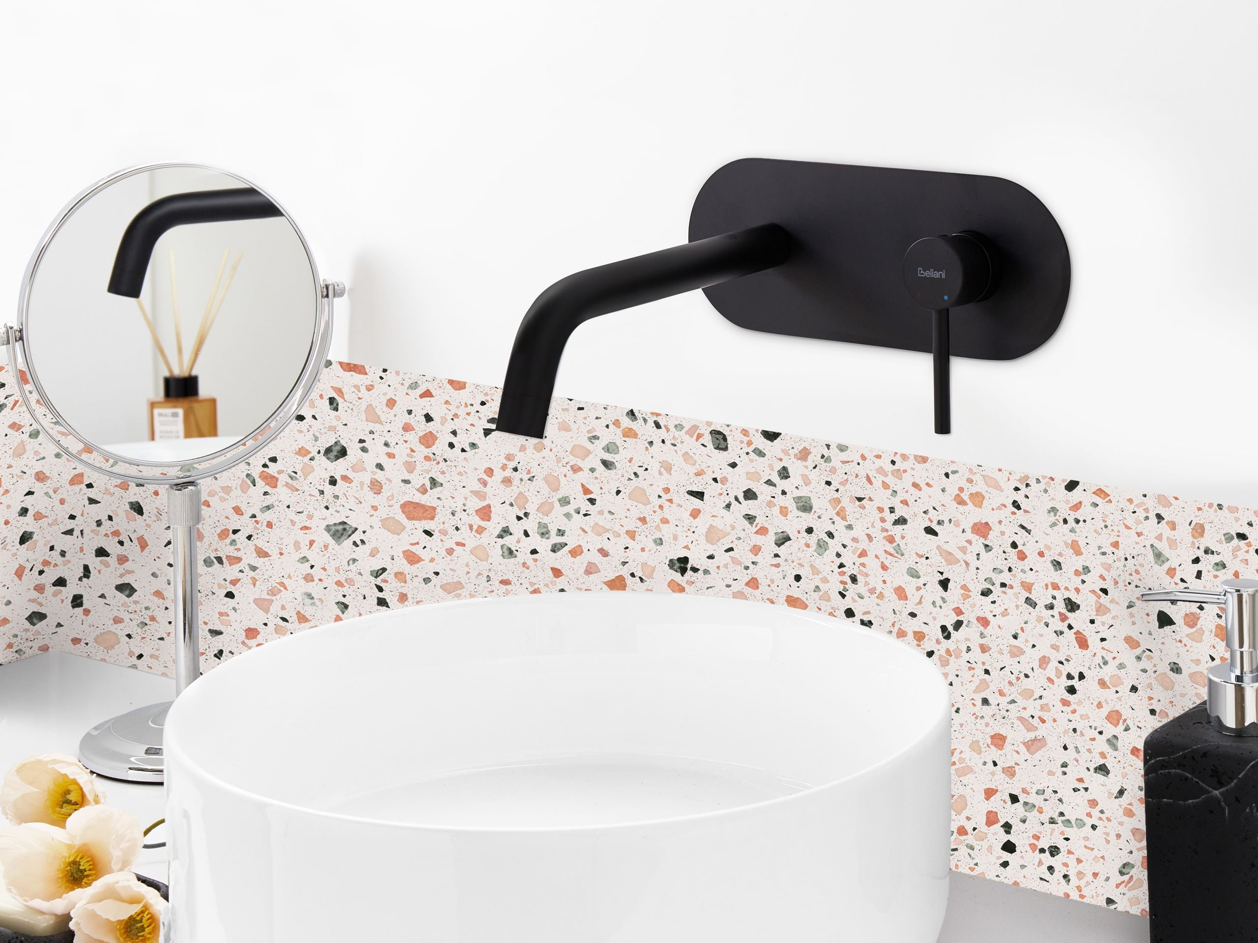 Seinään kiinnitettävä pesuallashana GUAIBA messinki Musta
