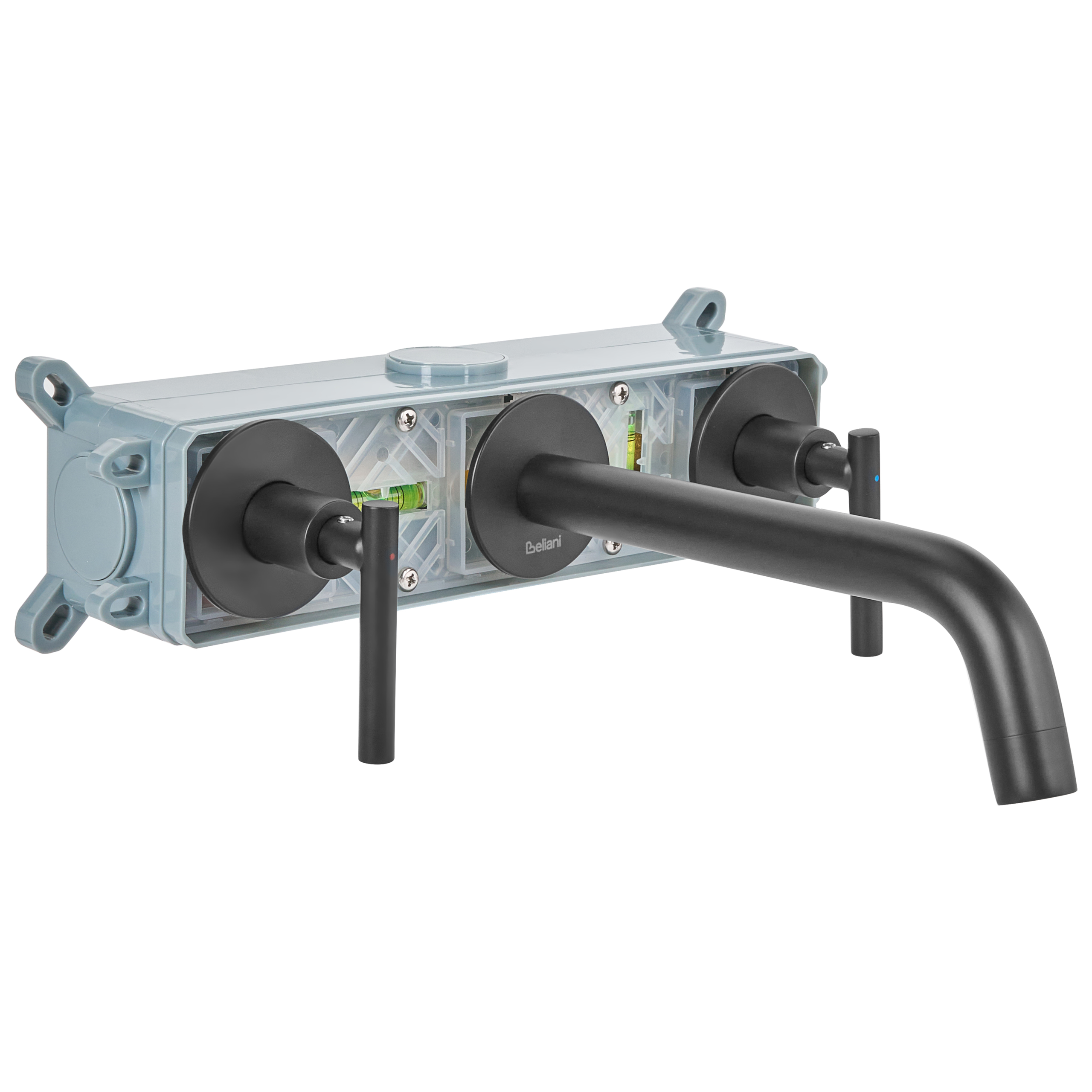 Seinälle asennettava kaareva hana. Tämä seinään kiinnitettävä pesuallashana on täydellinen valinta jokaiseen moderniin kylpyhuoneeseen. Selkeälinjainen, kaartuva nokka sekä kaksi erillistä kahvaa antavat hanalle minimalistisen ilmeen ja takaavat lämpötilan tarkan ja helpon säätämisen. Se on tyylikäs ja käytännöllinen valinta päivittäiseen käyttöön ja sopii erinomaisesti puhtaisiin, järjestettyihin tiloihin.