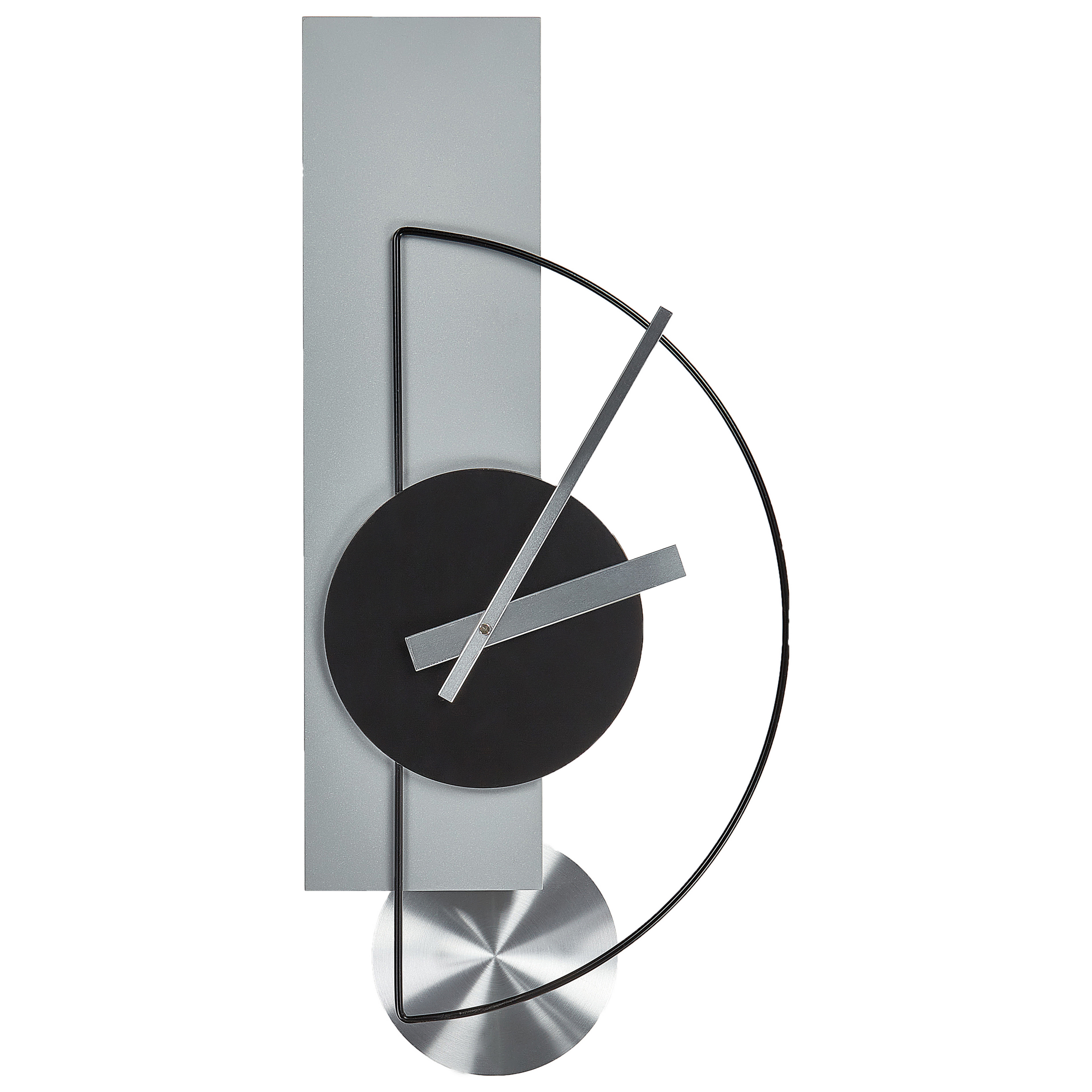 Moderni heilurikello ilman numeroita. Tämä avantgardistinen seinäkello on rohkea lisä mille tahansa seinälle geometristen muotojensa ja näyttävän väripalettinsa ansiosta. Pyöreitä sekä suorakulmaisia elementtejä yhdistävässä kellossa on hopeansävyiset suuret viisarit ja koristeellinen heiluri, jotka tekevät siitä sekä käytännöllisen että taiteellisen seinäkoristeen. Kello sulautuu vaivattomasti osaksi modernia tai eklektistä sisustusta, tuoden ripauksen hienostuneisuutta mihin tahansa tilaan.
