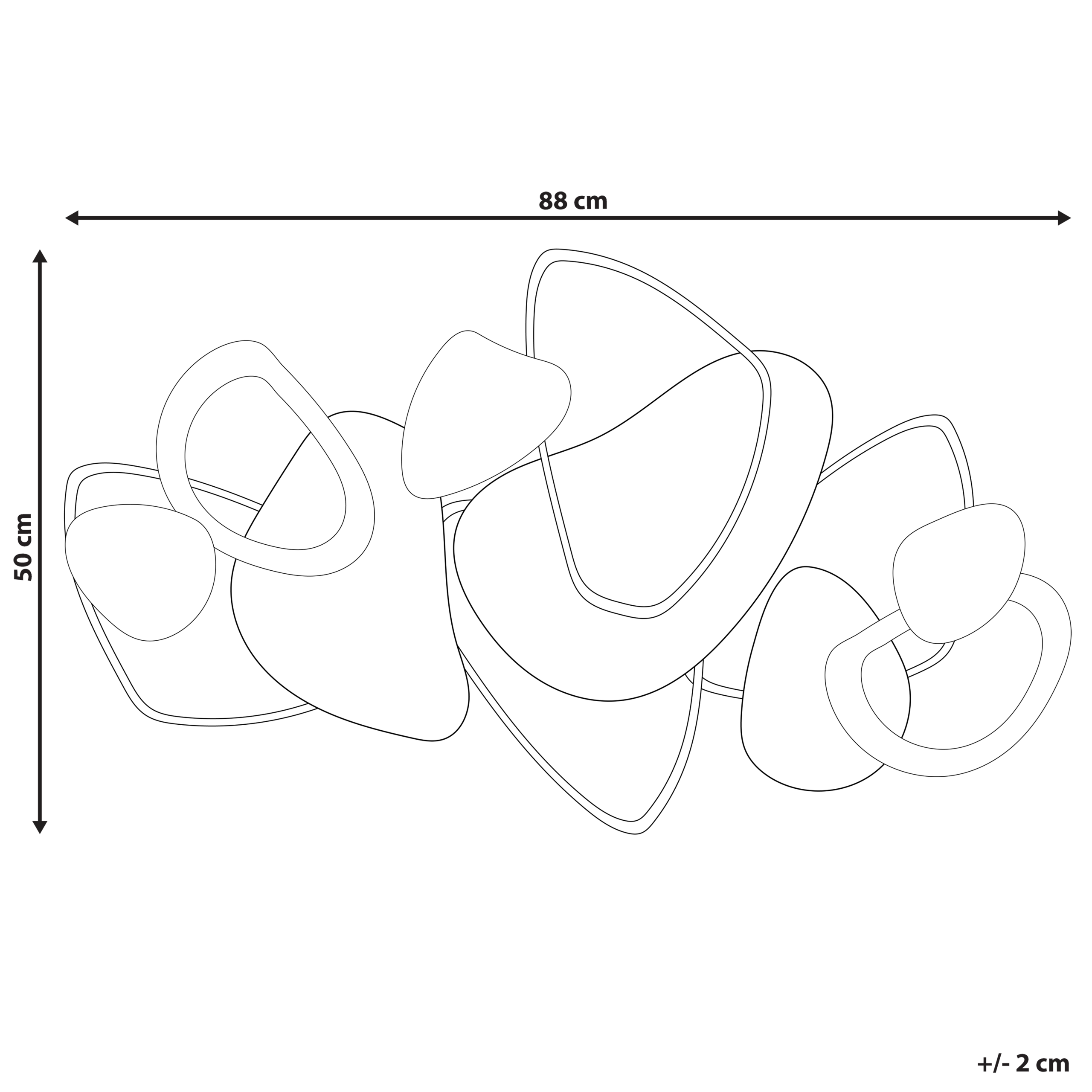 Tyylikäs abstrakti seinäkoriste. Tämä käsintehty seinäkoriste on loistava korostekappale mille tahansa olohuoneen tai ruokailutilan seinälle. Useista osista koostuva abstrakti muotoilu on jätetty tarkoituksella kuluneen näköiseksi esteettisen ilmeen luomiseksi. Aseta teos konsolipöydän tai lipaston yläpuolelle ja nauti sen tuomasta retrohenkisestä glamour-tyylistä.