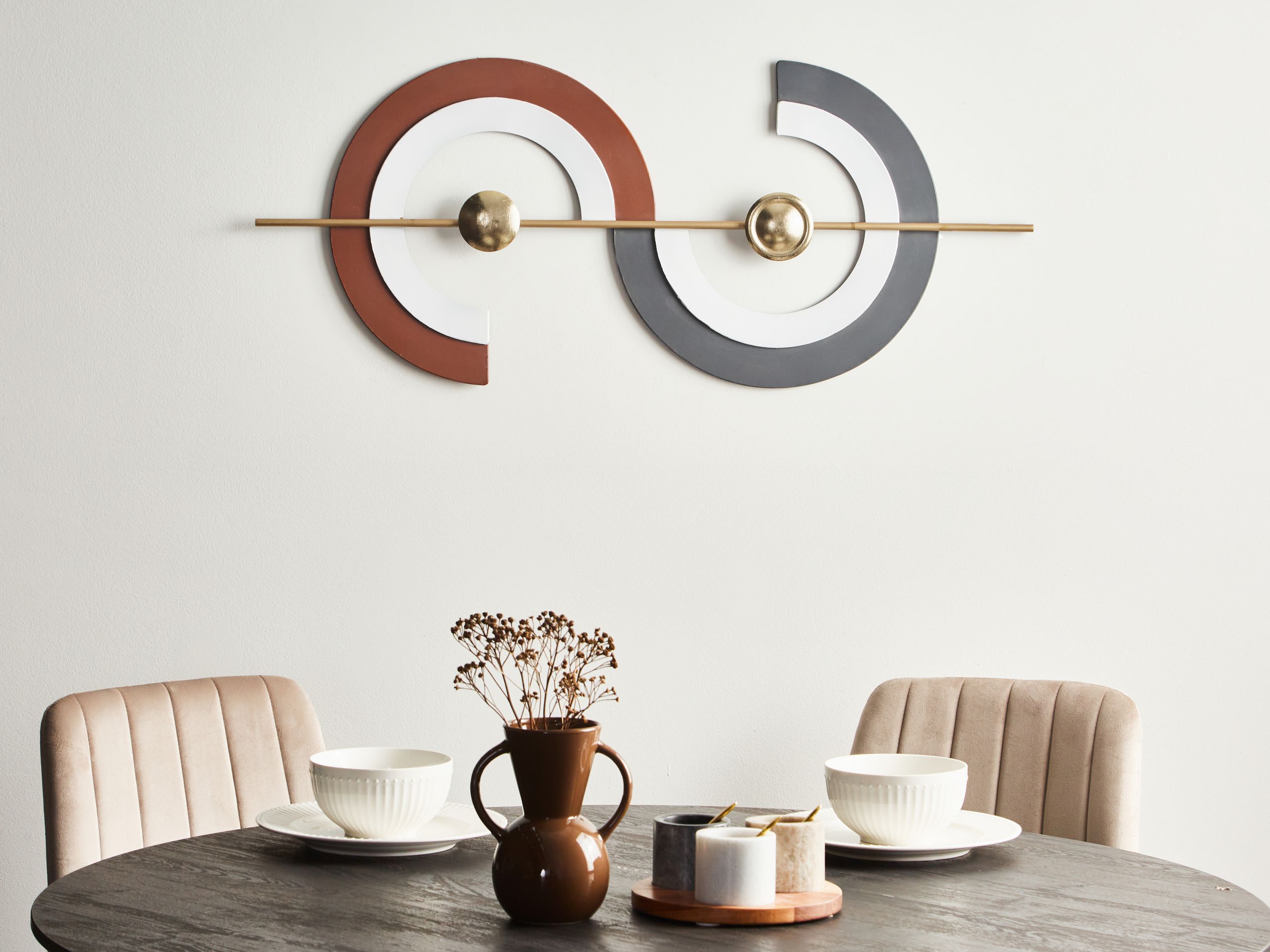 Moderni ripustettava koriste. Korista tilasi tällä modernilla seinäkoristeella, joka on suunniteltu tuomaan nykyaikaista särmää joka huoneeseen. Se on valmistettu käsin kestävästä raudasta, ja sen ainutlaatuinen muotoilu täydentää erinomaisesti hienovaraisia kullanvärisiä aksentteja, lisäten ripauksen hienostuneisuutta. Koriste sopii täydellisesti olohuoneisiin, eteisiin, ruokailutiloihin tai makuuhuoneisiin, ja takana sijaitsevat koukut tekevät sen ripustamisesta vaivatonta.