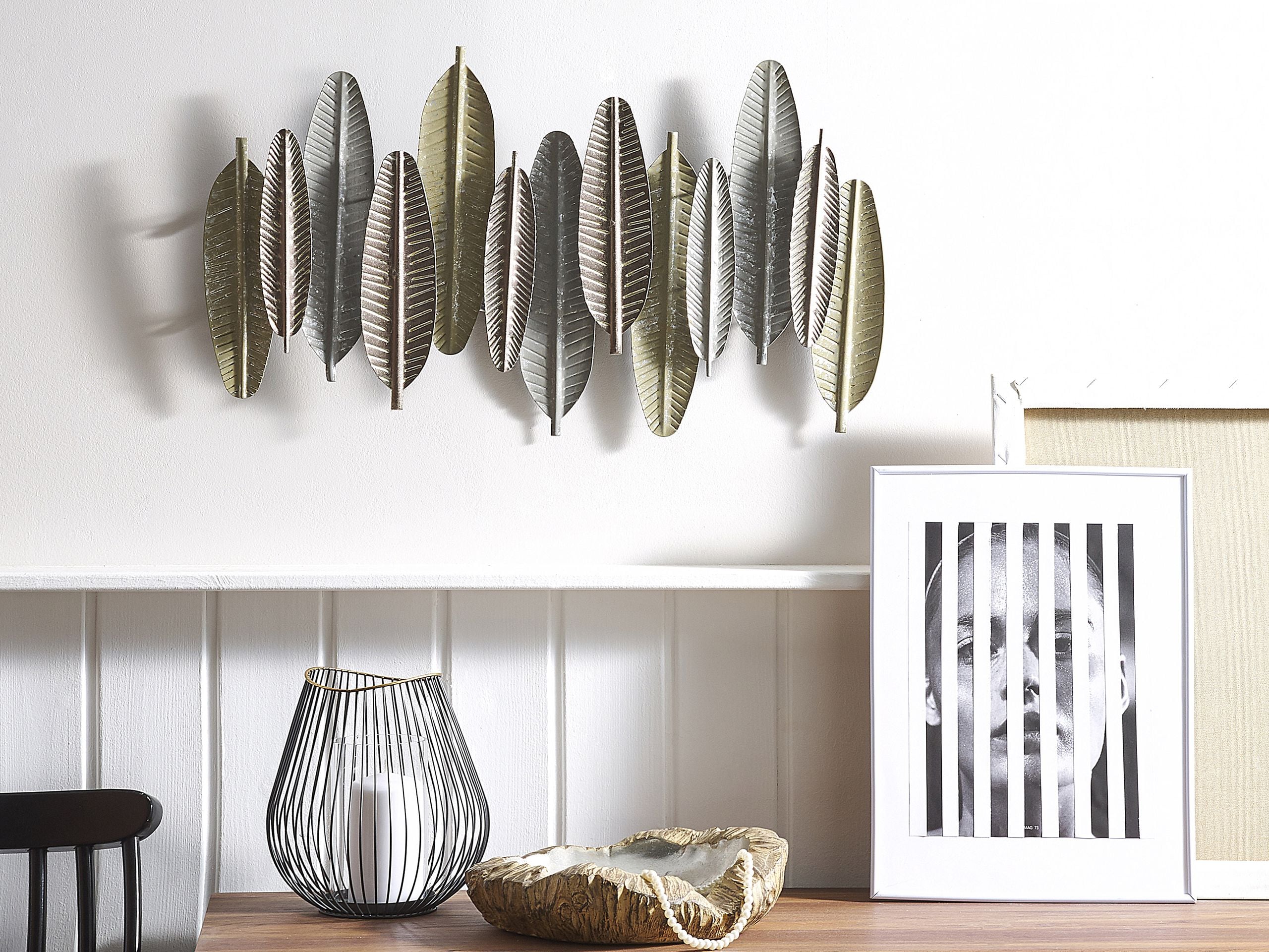 Industriaalinen seinäkoriste. Tämä herkkä mutta kestävä, metallista käsin valmistettu seinäkoriste sopii täydellisesti eklektisiin, industriaalisiin ja luonnon inspiroimiin sisustuksiin. Se koostuu useista eri kokoisista höyhenistä, joiden pinnat on viimeistelty kullan ja hopean sävyillä, jotka näyttävät hyvältä sekä vaaleita että tummia seiniä vasten. Ripusta se sivupöydän, sohvan tai television ylle vaaka- tai pystysuoraan ja nauti sen ainutlaatuisesta, elegantista muotoilusta.