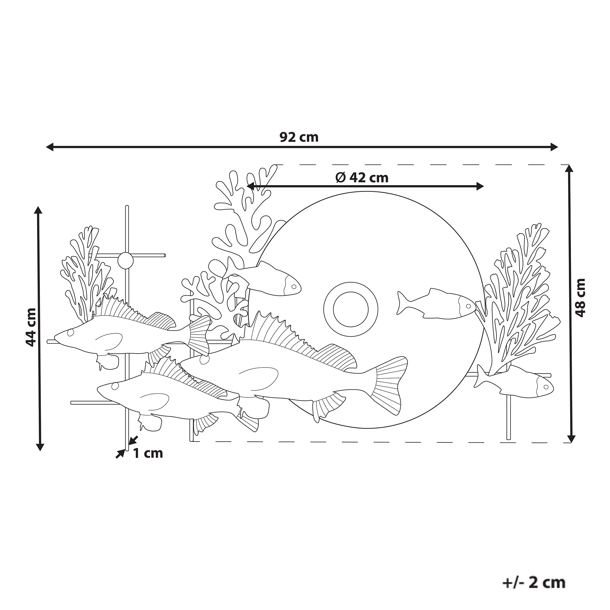 Käsintehty merellinen ripustettava koriste. Päivitä kodin sisustusta tällä ainutlaatuisella seinäkoristeella, joka sulautuu täydellisesti osaksi mitä tahansa tilaa. Käsin raudasta valmistetussa koristeessa on kiehtova meriteema, joka koostuu eri muotoisista ja sävyisistä kaloista sekä koralleista. Seinäkoriste näyttää erinomaiselta erityisesti moderneissa tai välimerellisissä sisustuksissa, tuoden niihin väriloistoa ja merellistä tunnelmaa.