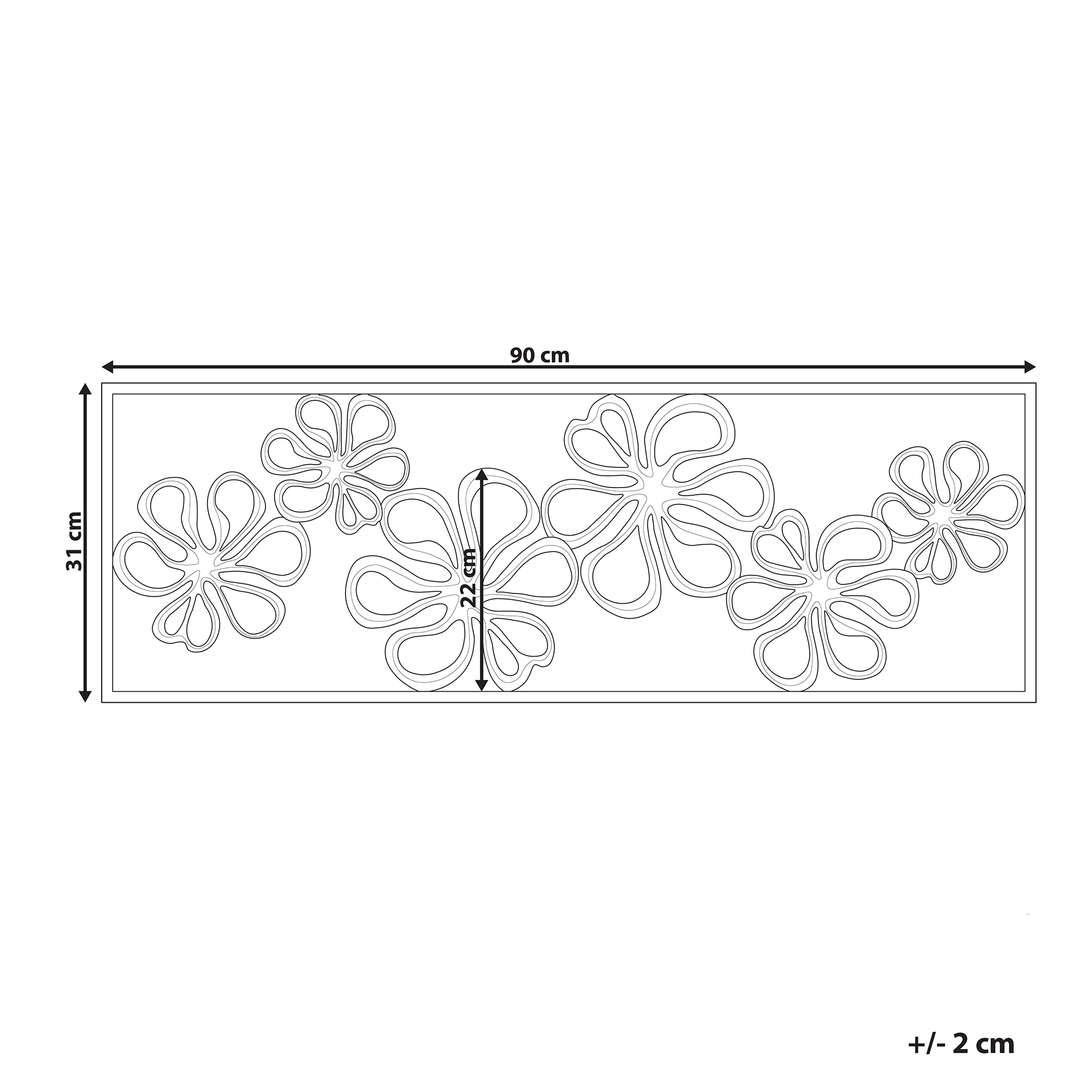 Käsintehty metallinen koriste seinälle. Täydennä jokapäiväisen tilasi tai makuuhuoneesi sisustusta tällä suorakulmaisella seinäkoristeella. Se on valmistettu käsin kestävästä raudasta, joten se koristaa kotiasi vuosien ajan. Modernin muotoilunsa ansiosta – kukkamaiset muodot kehyksen sisällä – se sopii moniin nykyaikaisiin sisustuksiin.
