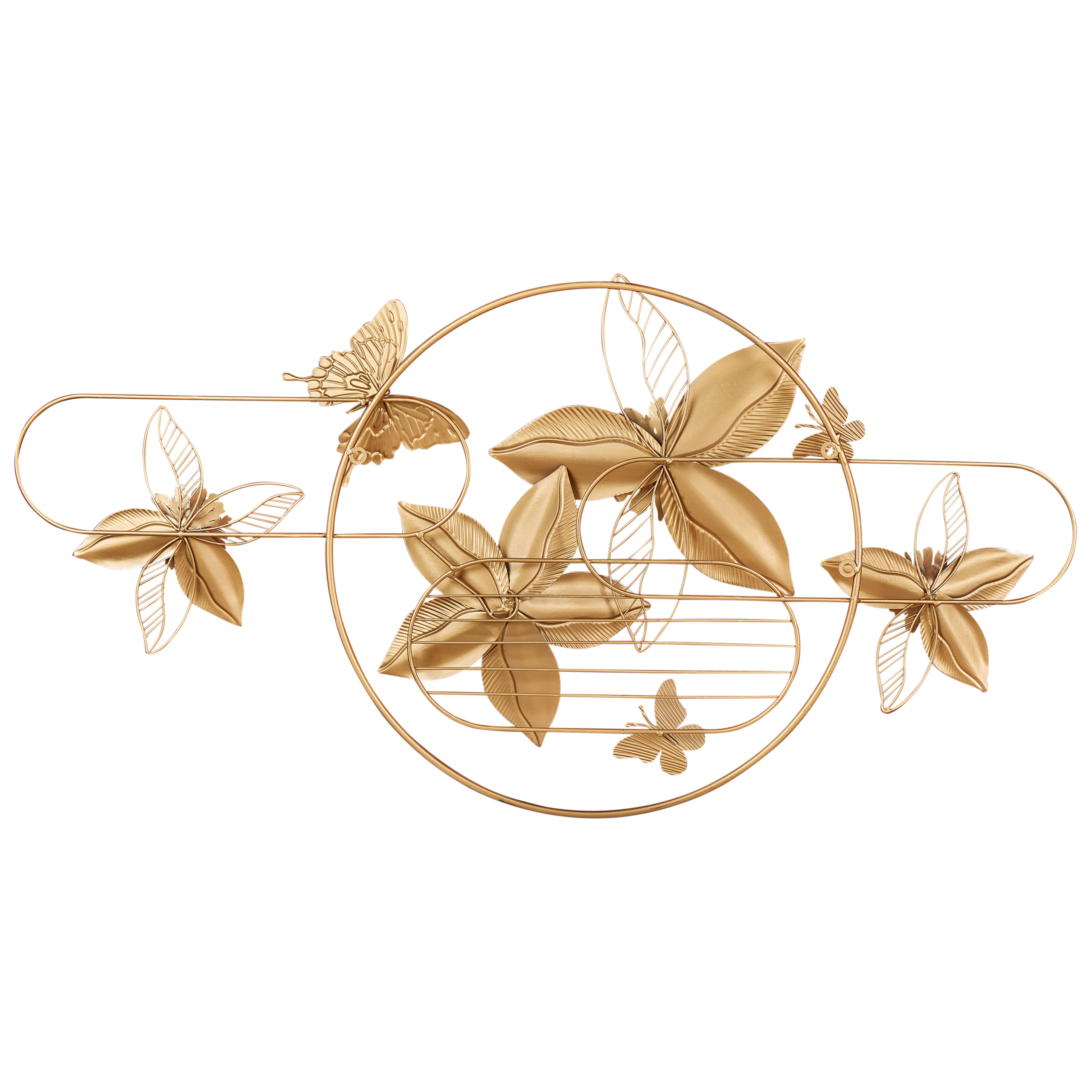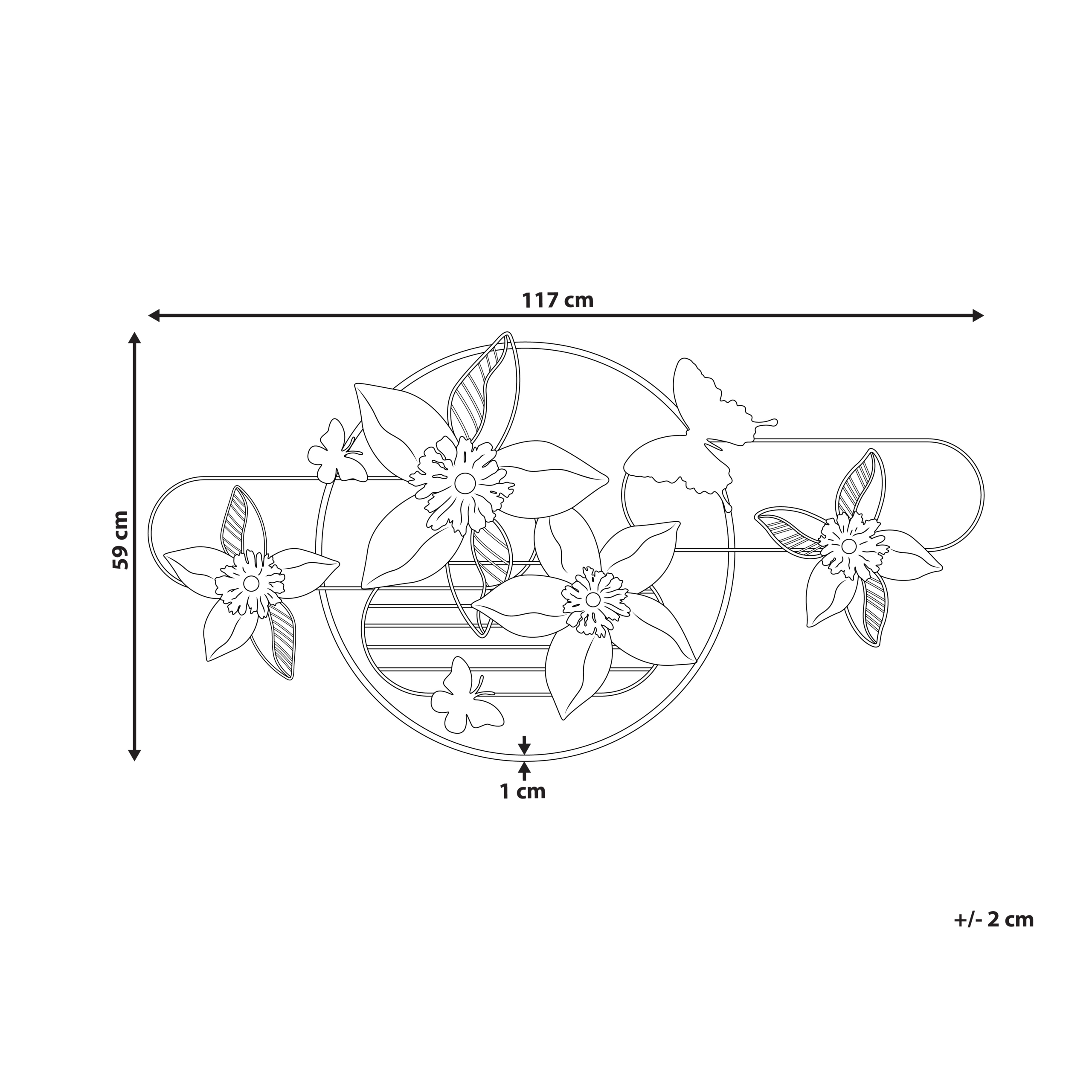 Ripustettava koriste kukilla ja perhosilla. Tämä seinäkoriste raudasta on sekä kestävä että helppohoitoinen, ja siinä esiintyy kaunis kukkakuvio, jota koristavat hempeät perhoset sekä tyylikkäät kultaiset korostukset. Pehmeä väripaletti ja kiiltävät elementit luovat hienostuneen ilmeen, joka sopii erinomaisesti moderniin ja glamour-tyyliseen sisustukseen. Takana olevien koukujen ansiosta seinäkoriste on helppo ripustaa mihin tahansa tilaan.