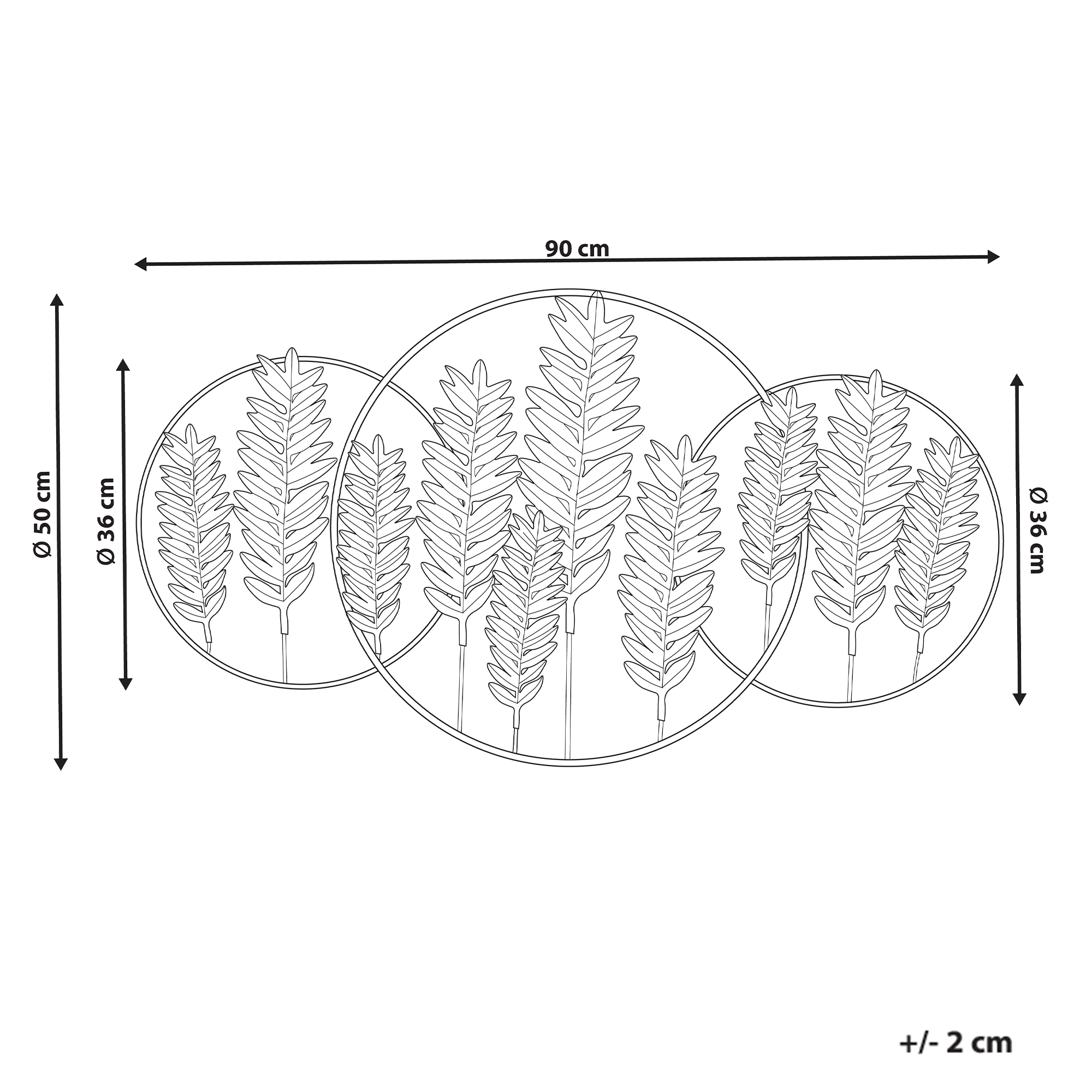 Käsintehty ripustettava koriste lehdillä. Tuo ylellistä luonnontuntua seinälle tällä seinäkoristeella, jossa on siroilla ympyröillä kehystettyjä saniaisenlehtiä. Kestävästä, helposti puhdistettavasta raudasta käsin valmistettu koriste yhdistää kullan ja vihreän sävyjä, tuoden hienostuneisuutta mihin tahansa tilaan ja sopien täydellisesti moderniin sisustukseen. Takapuolelle sijoitetut ripustuskoukut mahdollistavat vaivattoman ripustuksen.