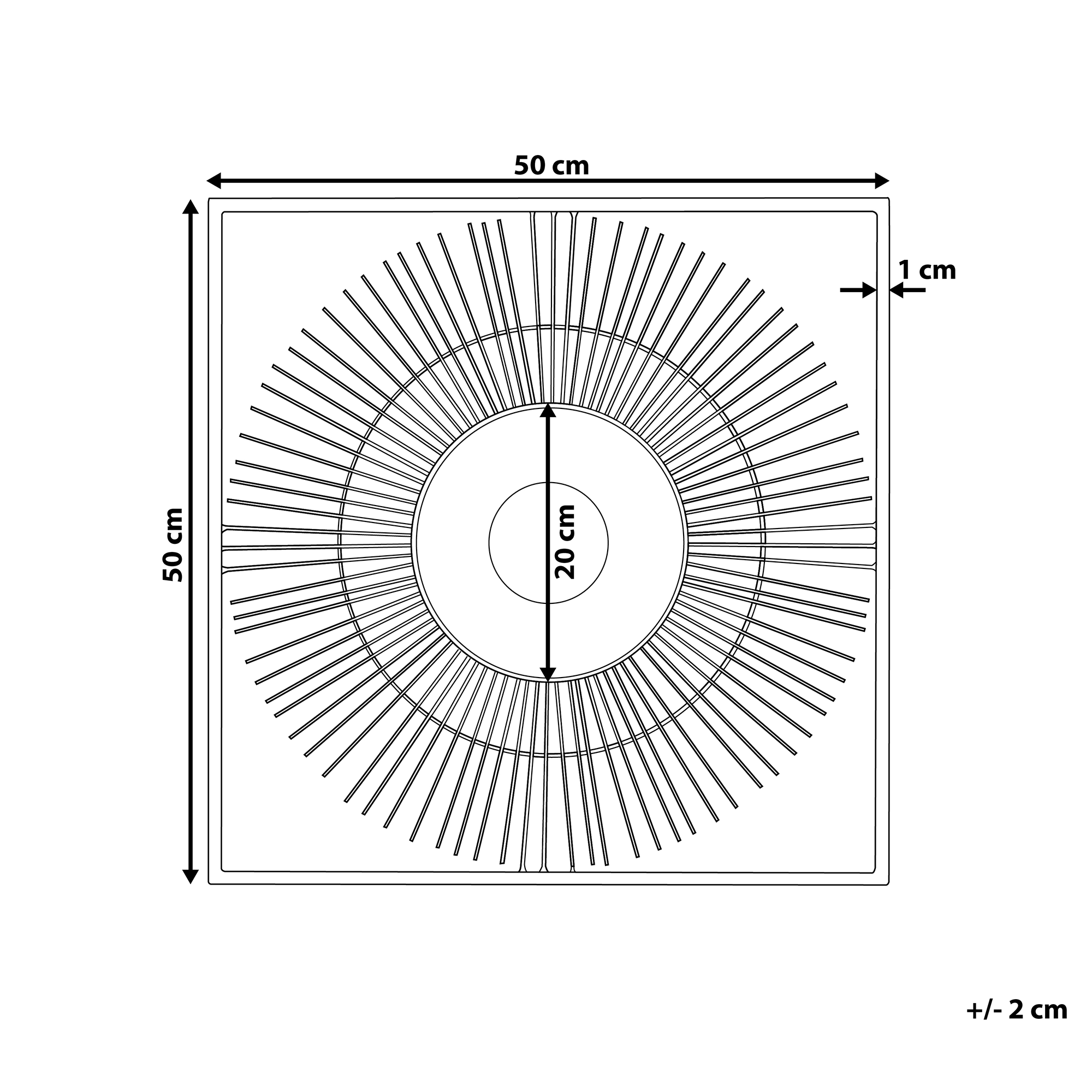 Nelikulmainen seinäkoriste. Rikastuta sisustustasi tällä minimalistisella seinäkoristeella. Siron aurinkoa muistuttavan muotoilunsa ansiosta koriste on helppo yhdistää monenlaisiin sisustuksiin. Seinäkoriste on valmistettu laadukkaasta metallista, joten se kaunistaa kotiasi vuosia. Koriste sopii erityisen hyvin moderneihin, glamour- ja vintage-tyylisiin sisustuksiin.