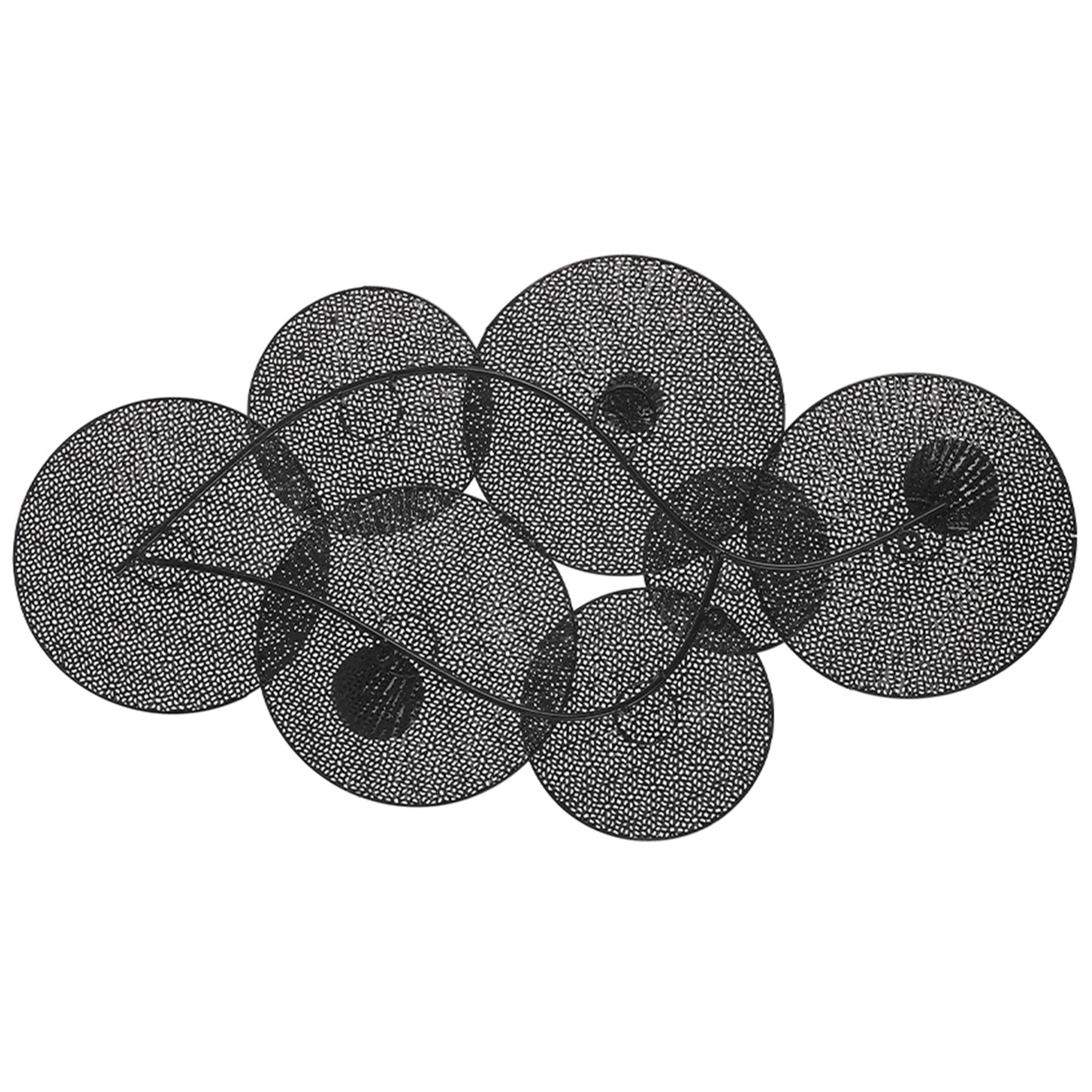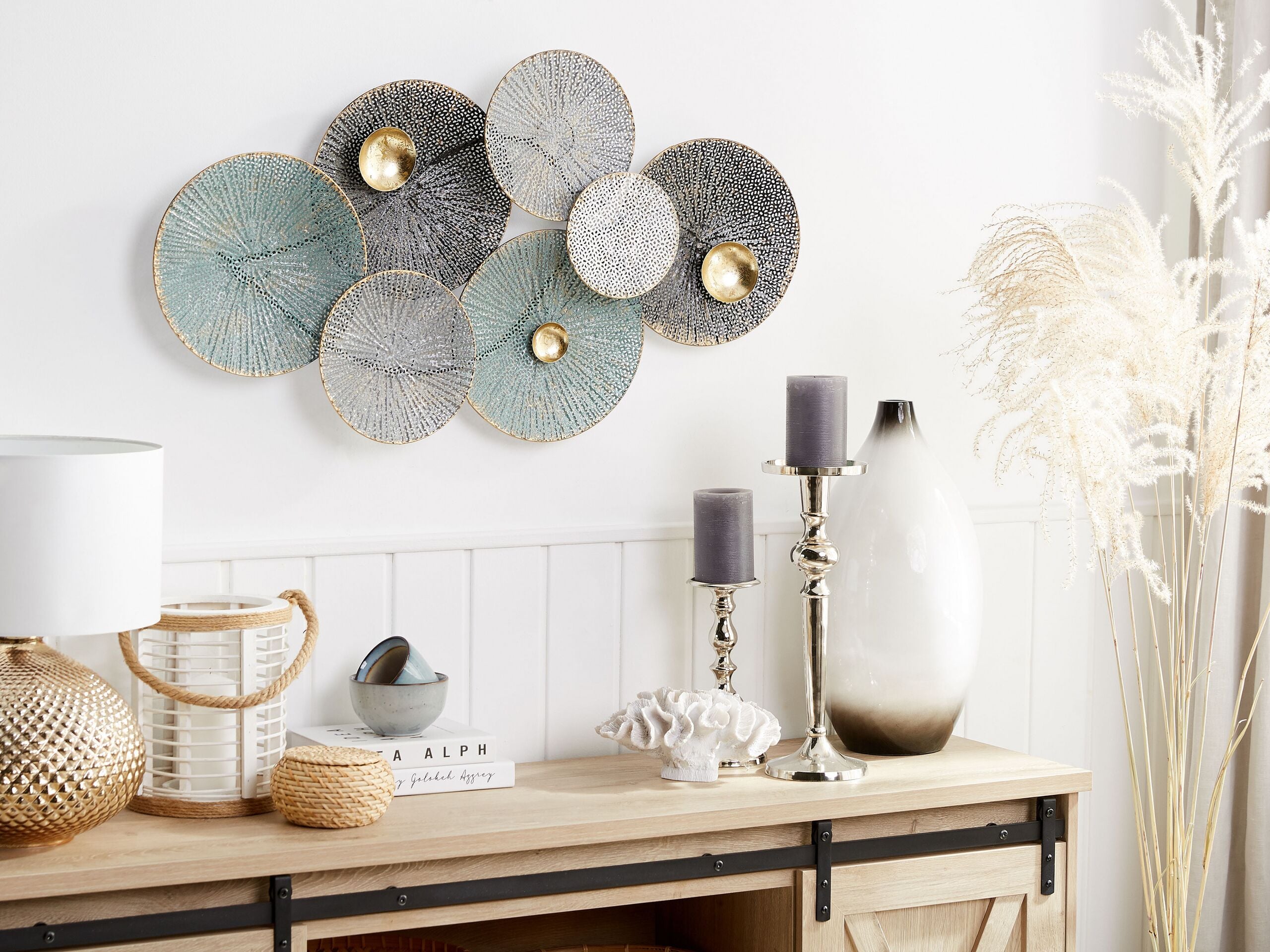 Moderni pyöreä seinäkoriste. Tämä seinäkoriste on täydellinen lisä mihin tahansa moderniin, vintage- tai retrotyyliseen sisustukseen. Laadukkaasta metallista valmistettu koriste on maalattu kauniin herkillä sävyillä. Rikastuta sisustustasi tällä näyttävällä mutta kuitenkin keveän oloisella koristeella.