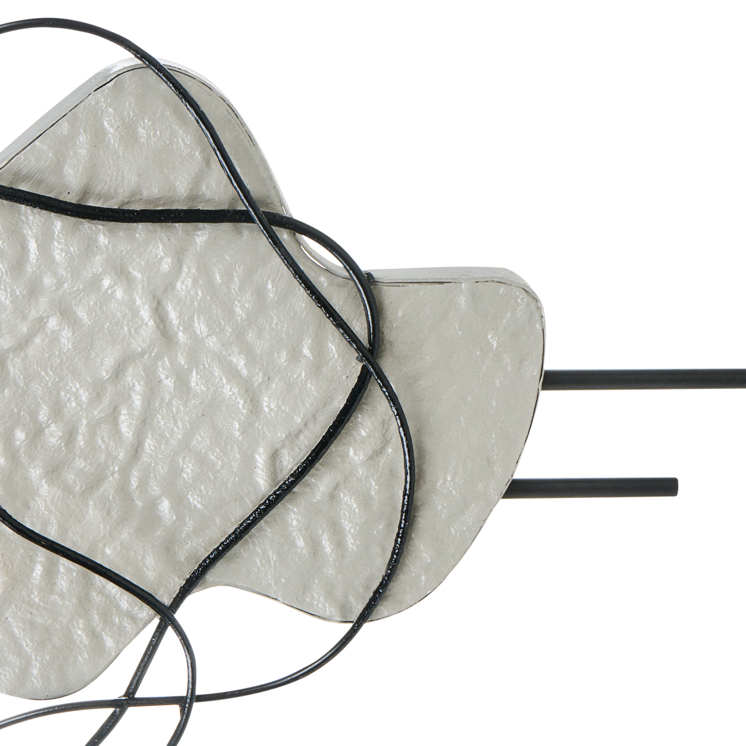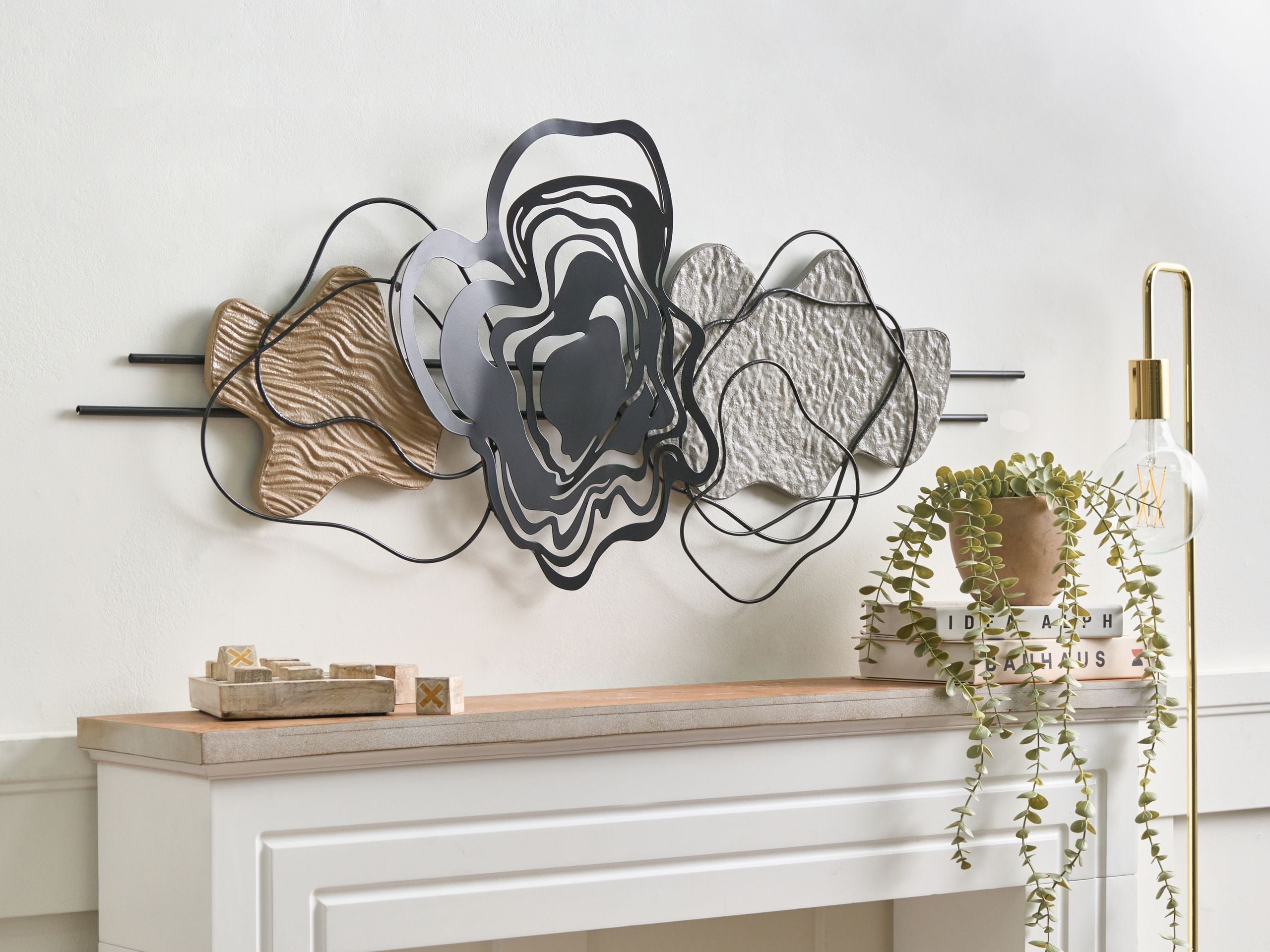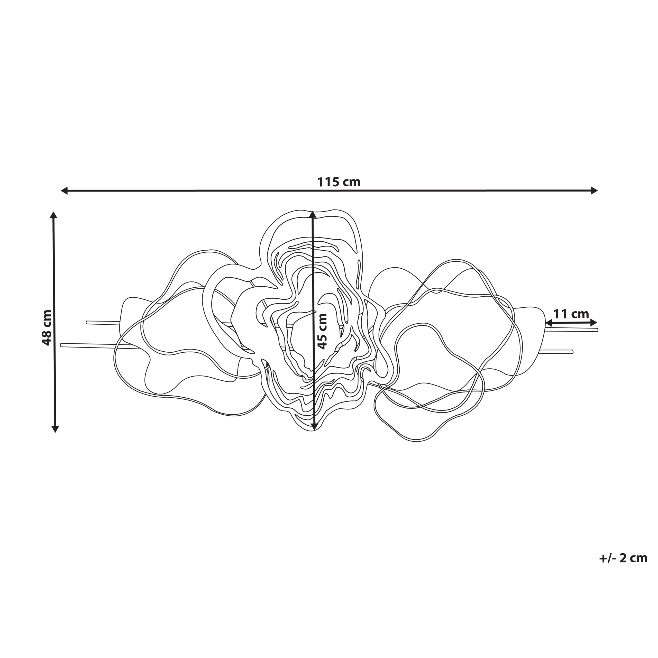Käsintehty ripustettava koriste. Tuo kotiin taiteellista luonnetta ja modernia hohtoa tällä ainutlaatuisella, raudasta valmistetulla seinäkoristeella. Teoksen sydämessä aaltoilevat mustat viivat luovat vaikutelman dynaamisesta rakenteesta, joka vangitsee valokeilan. Abstrakti sommittelu tekee koristeesta erinomaisen keskipisteen nykyaikaisiin ympäristöihin, koristipa se sitten minimalistista olohuonetta, neutraalinsävyistä makuuhuonetta tai modernia eteistä, joka kaipaa näyttävää yksityiskohtaa. Taakse sijoitetut koukut mahdollistavat ripustamisen sekä vaaka- että pystysuoraan, ja kestävä materiaali takaa virheettömän visuaalisen ilmeen vuosiksi.