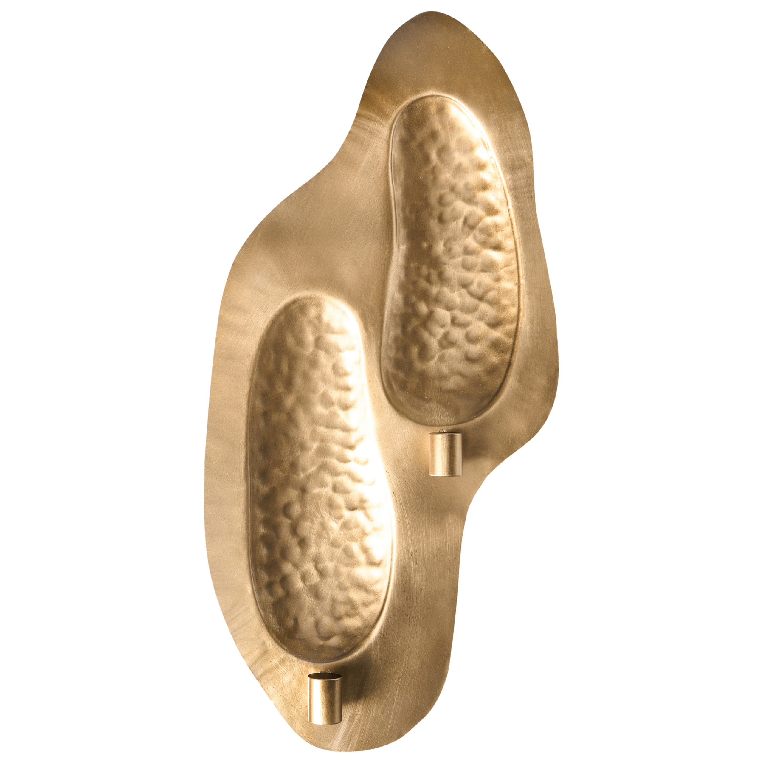 Koristeellinen käsintehty kynttilälampetti. Lisää ripaus tyyliä kotiisi tällä käsintehdyllä seinäkyntteliköllä, jossa on paikka kahdelle kynttilälle. Kestävästä ja lujasta raudasta valmistettu lampetti on viimeistelty kauniilla teksturoidulla pinnalla ja kiiltävällä kullanvärillä, minkä ansiosta se tuo lämpöä ja viehätystä jokaiseen tilaan. Takana olevien ripustuskoukkujen avulla se on helppo kiinnittää seinään, luoden viihtyisän ja kutsuvan hehkun.