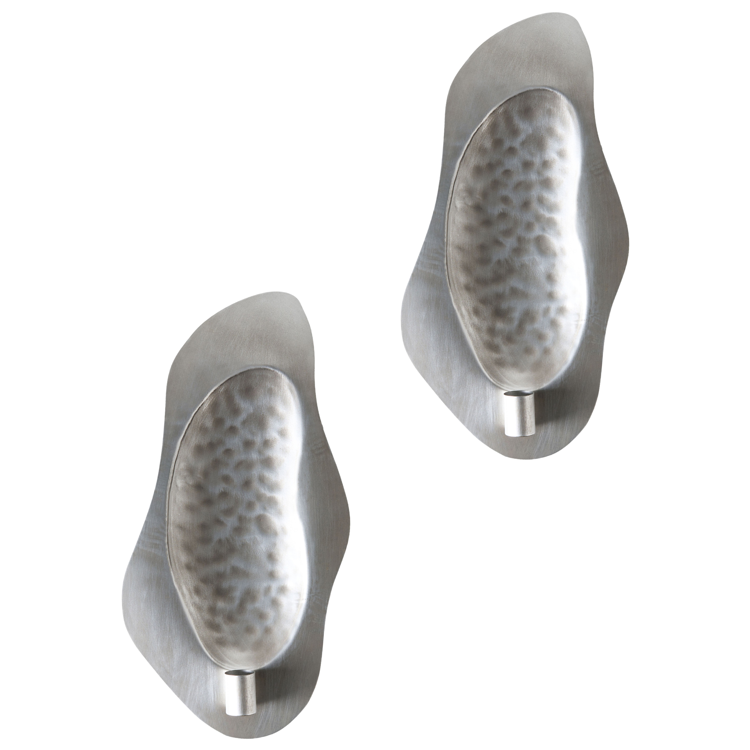 Glamour-tyylinen käsintehty seinäkynttelikkösetti. Lisää ripaus tyyliä kotiisi tällä kahden käsintehdyn seinäkynttelikön setillä. Kestävästä raudasta valmistetuissa lampeteissa on kaunis teksturoitu pinta ja kiiltävä hopea väri, joten ne tuovat lämpöä ja viehätystä mihin tahansa tilaan. Taakse sijoitettujen kätevien koukkujen ansiosta ne on helppo ripustaa paikoilleen viihtyisän ja kutsuvan hehkun tuomiseksi.