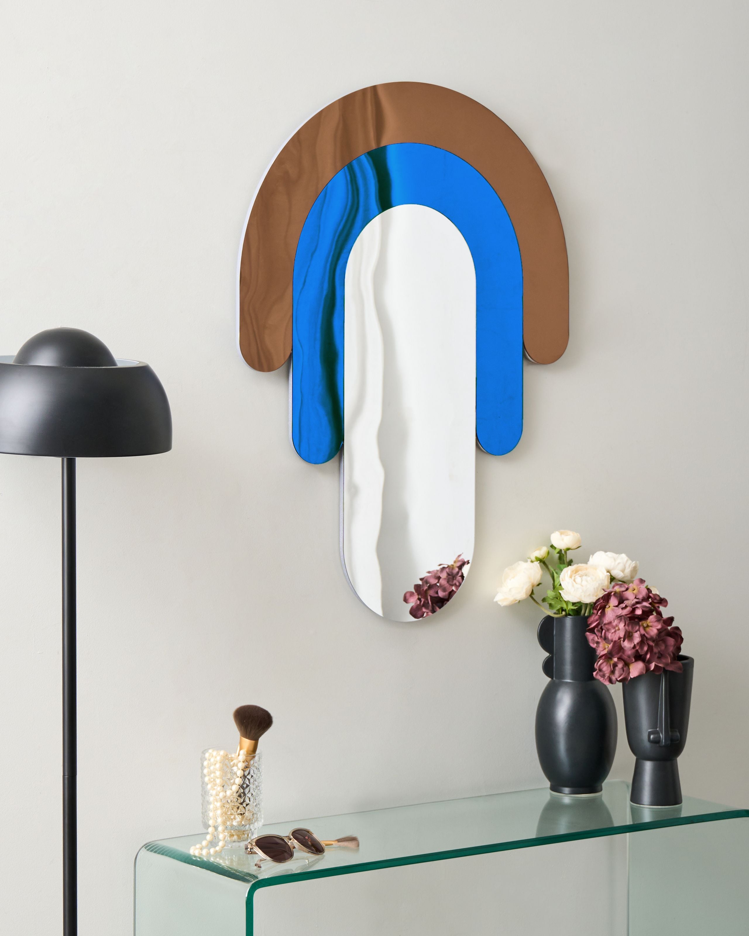 Ripustettava koristepeili. Lisää kotiin ripaus retroviehätystä tällä koristeellisella seinäpeilillä. Kestävästä MDF-levystä valmistetussa peilissä on leikkisä, epäsäännöllinen muoto, joka lisää luonnetta mihin tahansa tilaan. Monivärinen, käsintehty muotoilu piristää huonetta, mikä tekee peilistä katseita keräävän mutta käytännöllisen koristeen. Takana olevien integroitujen koukkujen ansiosta se on helppo ja nopea ripustaa seinälle.