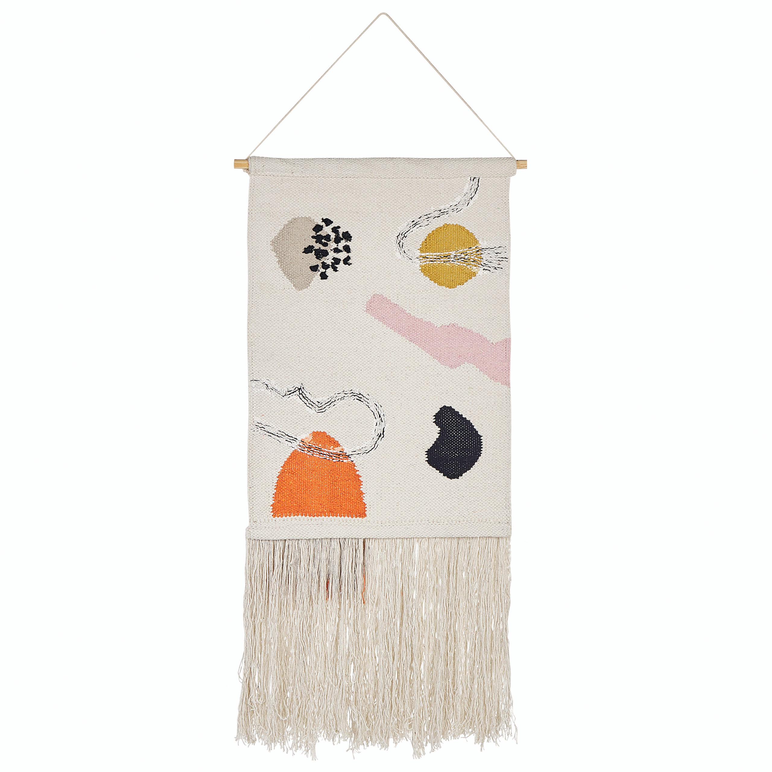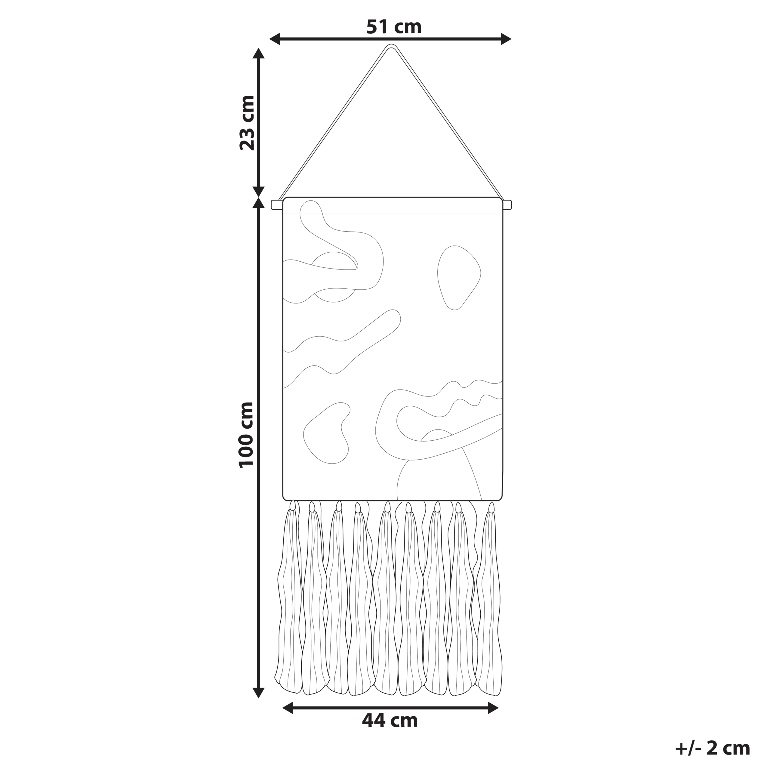 Käsin punottu boheemi seinävaate hapsuilla. Tämä poikkeuksellinen seinäkoriste on tyylikäs, katseita keräävä lisä mihin tahansa tilaan. Abstraktit, tuftatut kuviot antavat seinävaatteelle modernin ilmeen, kun taas neutraalit värit ja tyylikkäät hapsut tuovat koristeeseen boho-tyyliä. Seinäkoriste on valmistettu käsin punoen korkealaatuisesta puuvillasta ja polyesteristä, jonka ansiosta se on kestävä ja miellyttävän tuntuinen.