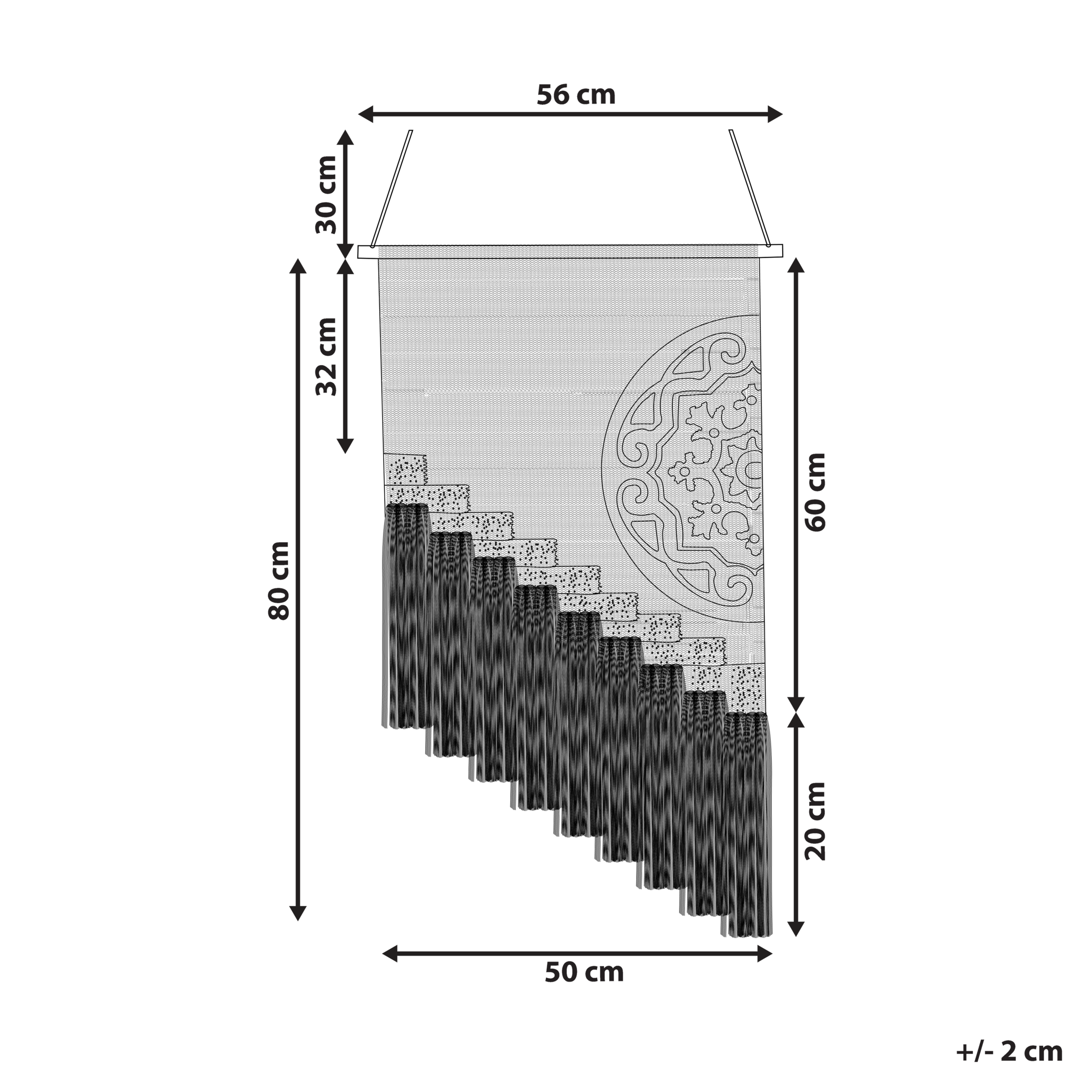 Käsintehty boho-tyylinen seinävaate hapsuilla. Tämä kaunis seinäkoriste tuo ainutlaatuista tunnelmaa jokaiseen tilaan, makuuhuoneesta olohuoneeseen. Korkealaatuisesta puuvillasta käsin punottu koriste on viimeistelty katseita keräävällä kuviolla ja vihreillä hapsuilla trendikkään ilmeen takaamiseksi. Seinävaate on loistava koristeellinen lisä mihin tahansa moderniin tai boho-tyylin inspiroimaan sisustukseen.
