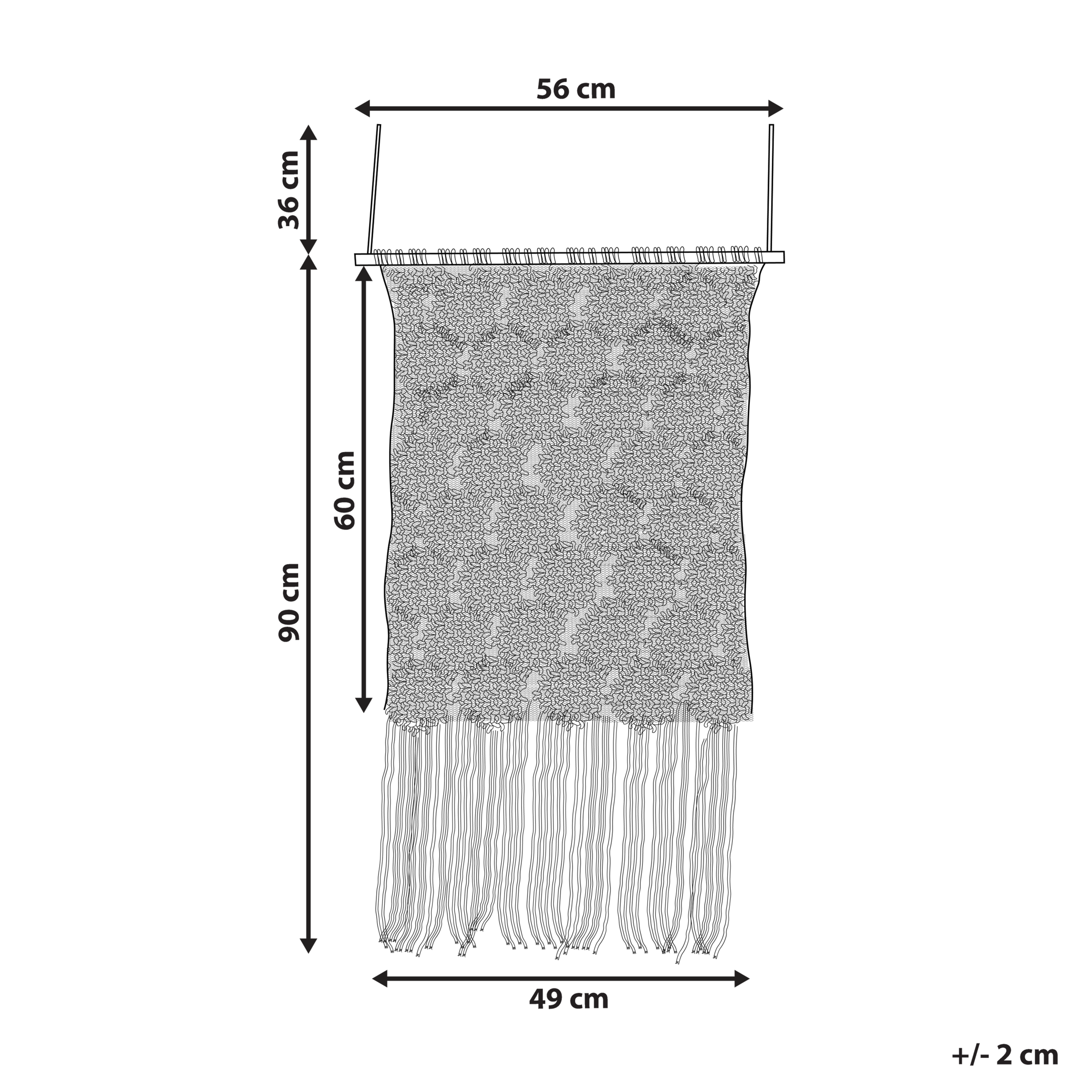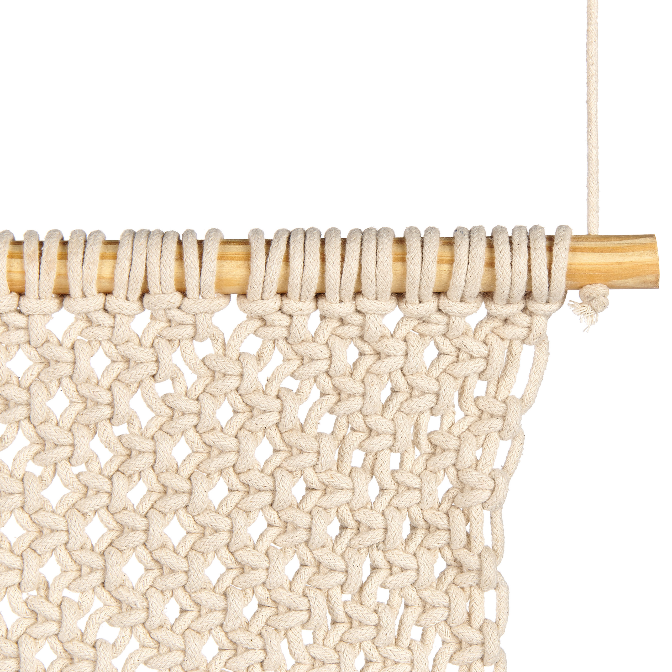 Käsintehty boho-tyylinen seinävaate. Tuo boho-tyyliä kotiisi tällä tyylikkäällä beigen värisellä seinäkoristeella. Korkealaatuisesta puuvillasta käsin valmistettu seinävaate on punottu makrameetekniikkaa käyttäen. Keveytensä ansiosta se on helppo ripustaa mihin tahansa, sulautuen loistavasti mihin tahansa sisustukseen, modernista perinteiseen.