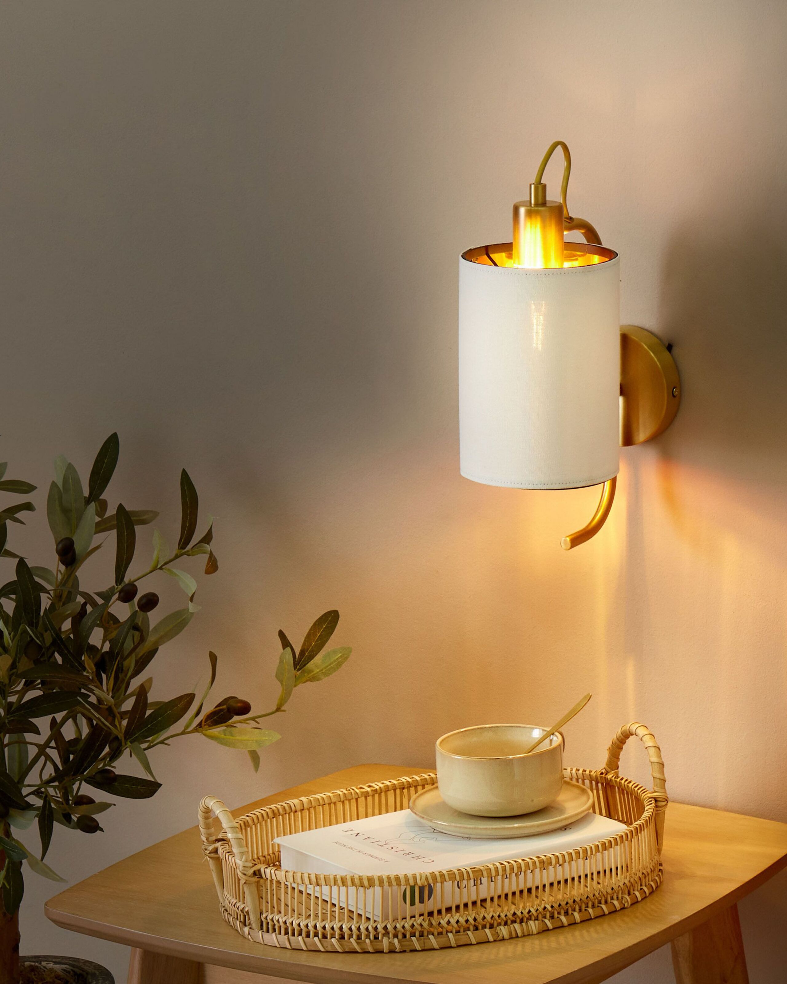 Moderni valaisin seinälle. Kohota tilaasi tällä upealla seinävalaisimella – harmoninen yhdistelmä modernia muotoilua ja ajatonta eleganssia. Kuparin sävyinen rautajalka on viimeistelty harjatulla pinnalla, ja lisää ripauksen industriaalista chic-tyyliä mihin tahansa huoneeseen. Valkoisella, luonnonpellavasta valmistetulla varjostimella kruunattuna sen valo luo lämpimän, tunnelmallisen hohteen. Valaise ympäristöäsi tyylikkyydellä ja ihastele, kun toiminnallisuus sulautuu esteettisyyteen.