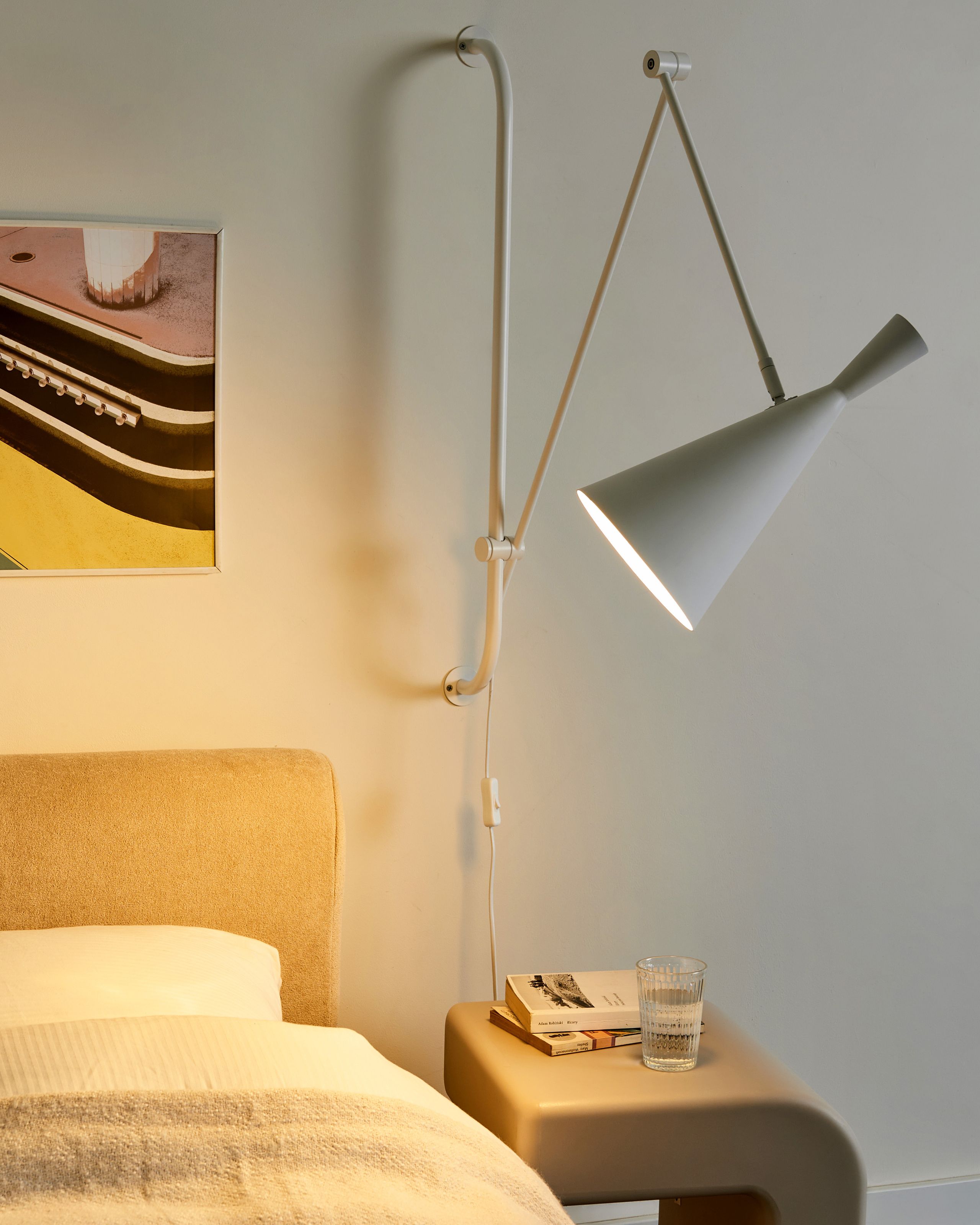 Moderni valaisin seinälle. Valaise tila tällä tyylikkäällä seinävalaisimella. Ajattoman valkoisella mattapinnalla viimeistelty valaisin huokuu modernia eleganssia. Säädettävä varsi mahdollistaa valon kohdistamisen sinne, missä sitä tarvitaan, ja kaunis kartiovarjostin lisää ripauksen nykyaikaista särmää. Valaisin on helppo kytkeä päälle tai pois päältä kätevällä, kaapeliin huomaamattomasti sijoitetulla virtakytkimellä. Korosta kodin sisustusta valaisimella, joka yhdistää muodon ja käytännöllisyyden vaivattomasti.