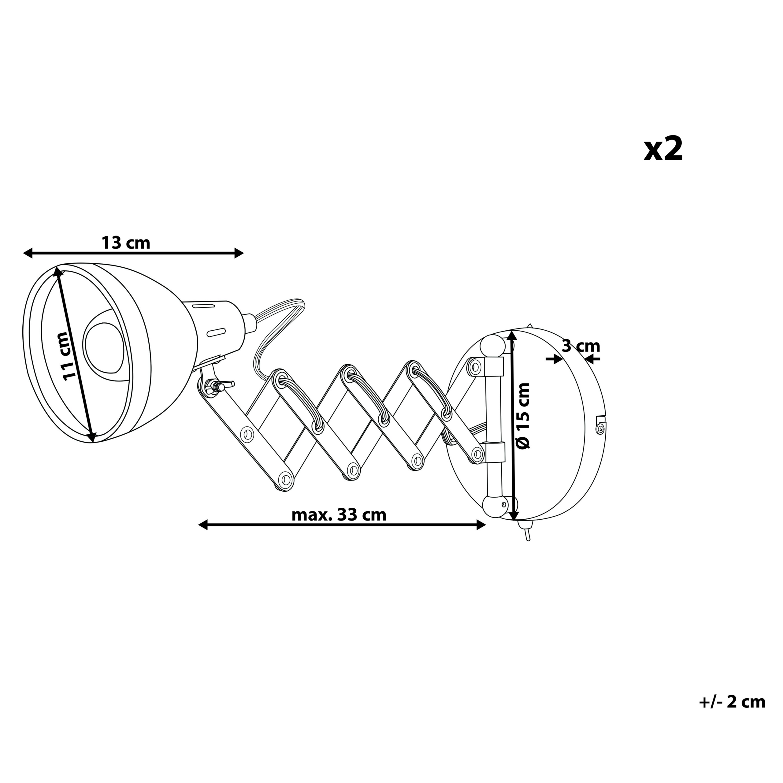 Industriaalinen säädettävä seinävalaisinsetti. Nämä seinävalaisimet ovat täydelliset lisävarusteet mihin tahansa tilaan, jossa tarvitaan vahvaa ja tarpeen mukaan säädettävää valoa. Haitarivarrella ja käännettävällä varjostimella varustetut valaisimet on helppo taittaa auki ja kiinni. Ne sopivat loistavasti esimerkiksi makuuhuoneen lukuvaloiksi tai työtilan kirjoituspöydän ylle. Valaisimet on valmistettu kokonaan teräksestä. Niiden kiiltävä, hopeanvärinen pinta antaa valaisimille erittäin modernin ilmeen, joka sopii hyvin kaikkiin sisustuksiin.