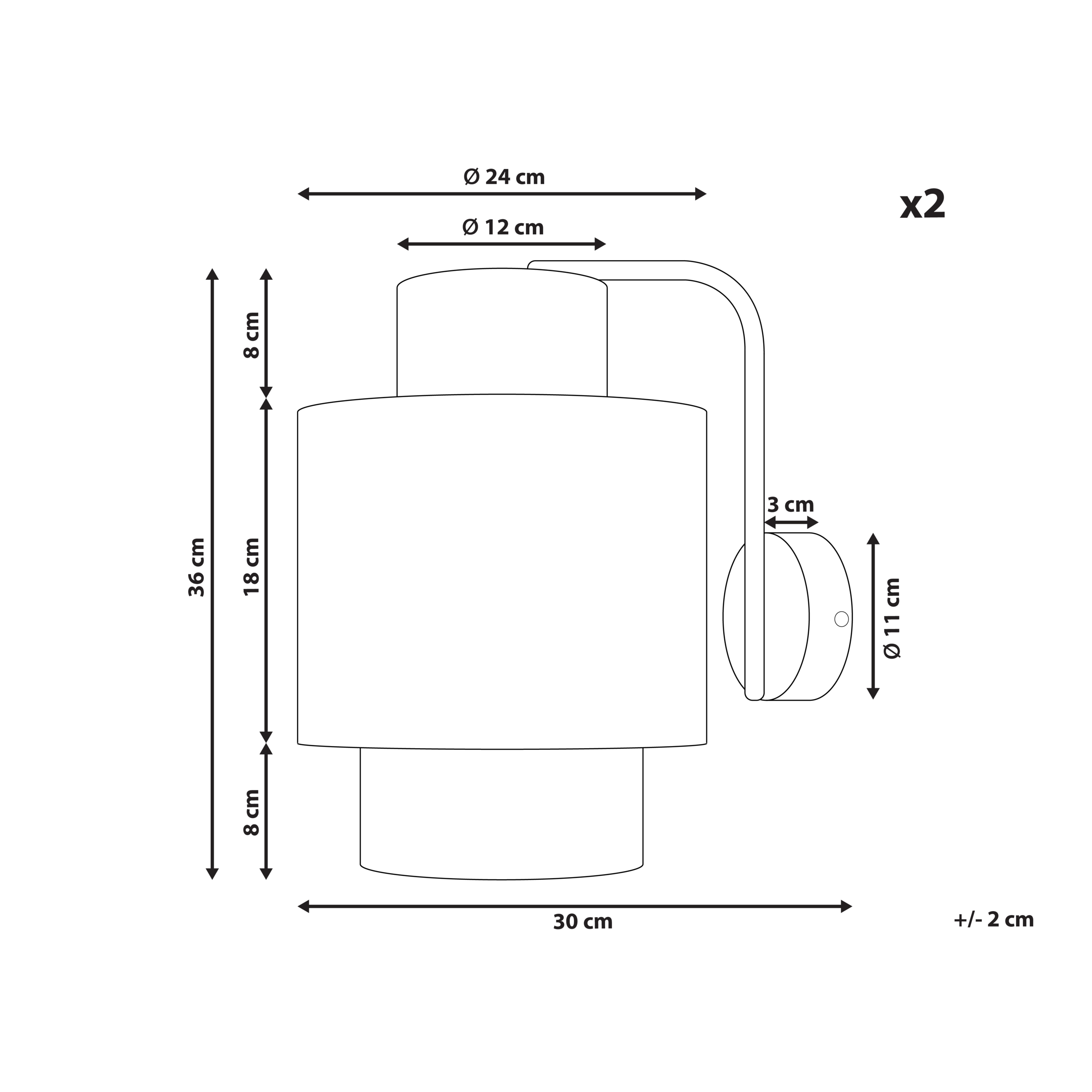 Hintaan sisältyy: Ei sisällä polttimoa, 2 x Seinävalaisin
