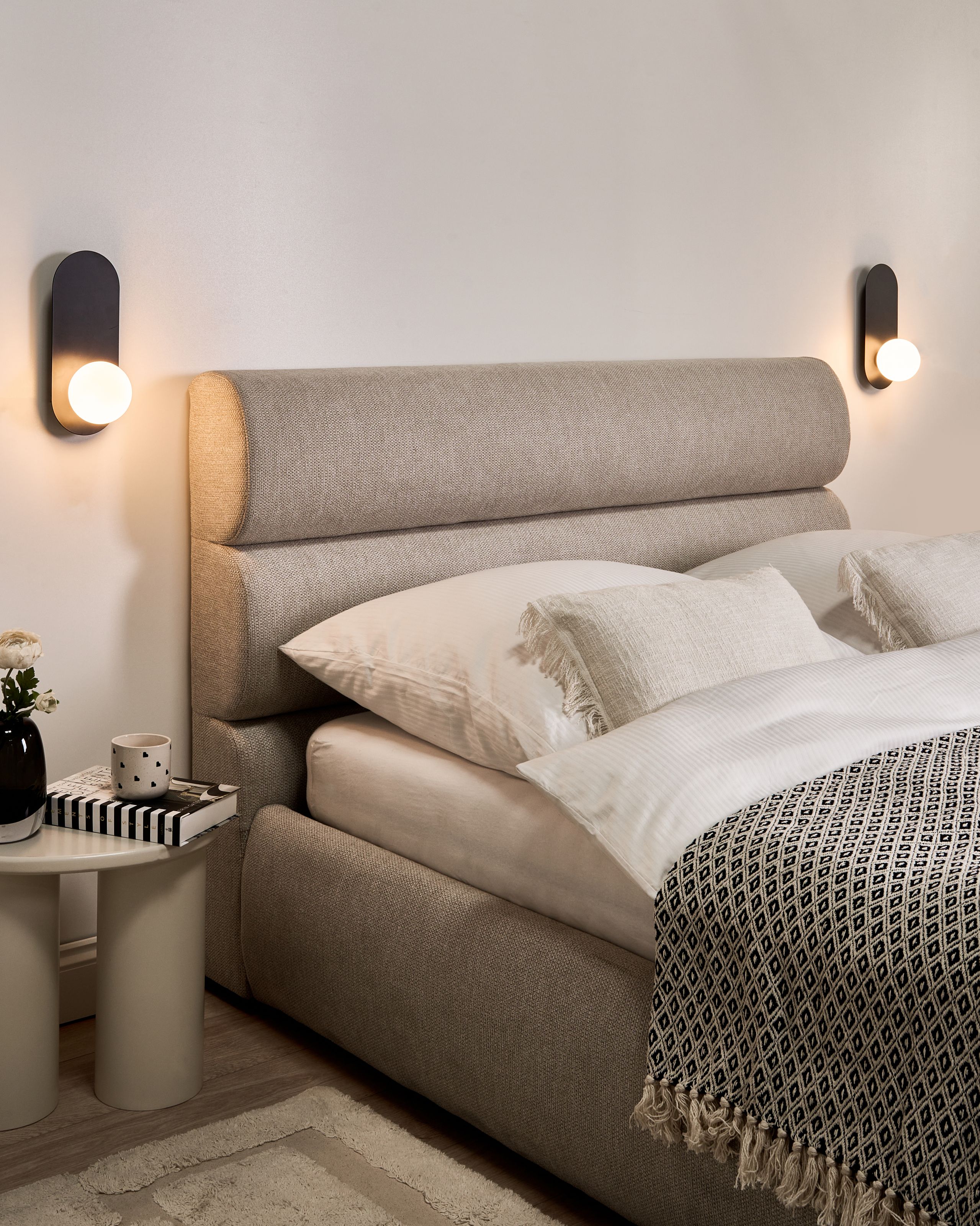 Ovaalin muotoiset seinävalaisimet pallovarjostimilla. Lisää makuuhuoneeseen tai olohuoneeseen pehmeää hajavaloa tällä kahden koristeellisen seinävalaisimen setillä. Valaisimien minimalistiset soikeat rautalevyt on yhdistetty läpinäkymättömiin lasipallovarjostimiin, jotka antavat lempeän hehkun – täydellinen rauhoittumiseen ennen nukkumaanmenoa. Muotoilussa on hienovarainen vintage-tunnelma, mutta se tuntuu silti puhtaalta ja nykyaikaiselta.