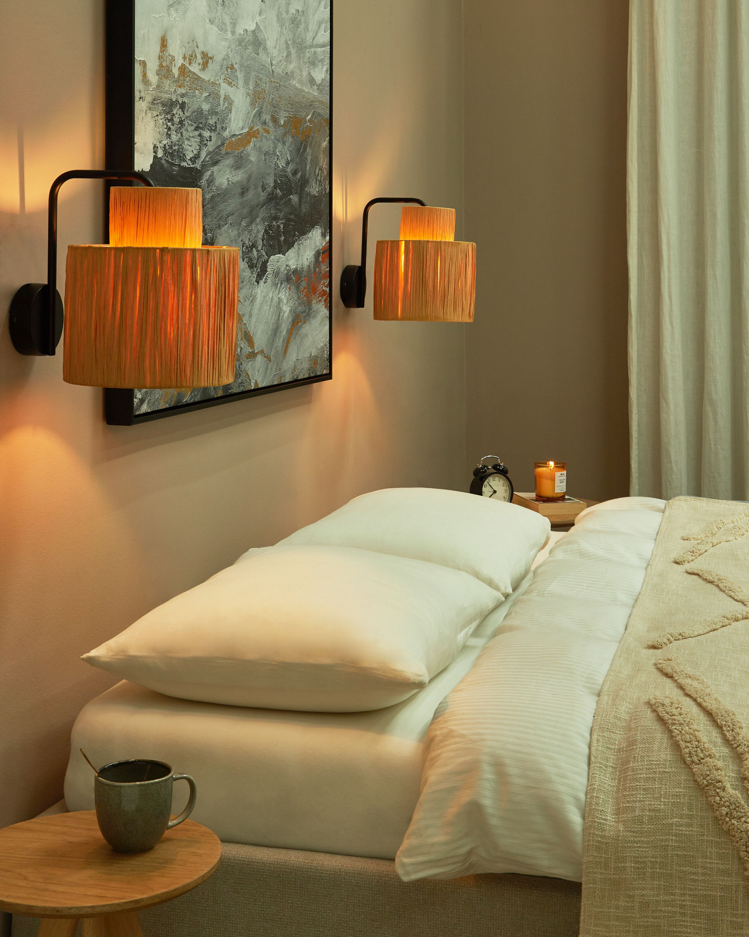 Boho-tyylinen seinävalaisinsetti. Valaise tilasi ja lisää siihen luonnollista charmia tällä seinävalaisinsetillä. Valaisimissa on raffiapalmusta valmistetut varjostimet ja pitkäikäisestä raudasta valmistetut varret, minkä ansiosta ne ovat helppohoitoisia sekä kestäviä. Setti sopii täydellisesti kaikkiin boho-tyylisiin sisustuksiin. Yhdistä se muiden luonnonläheisten kalusteiden kanssa tehdäksesi kodistasi tyylikkään ja hyvin valaistun paikan.