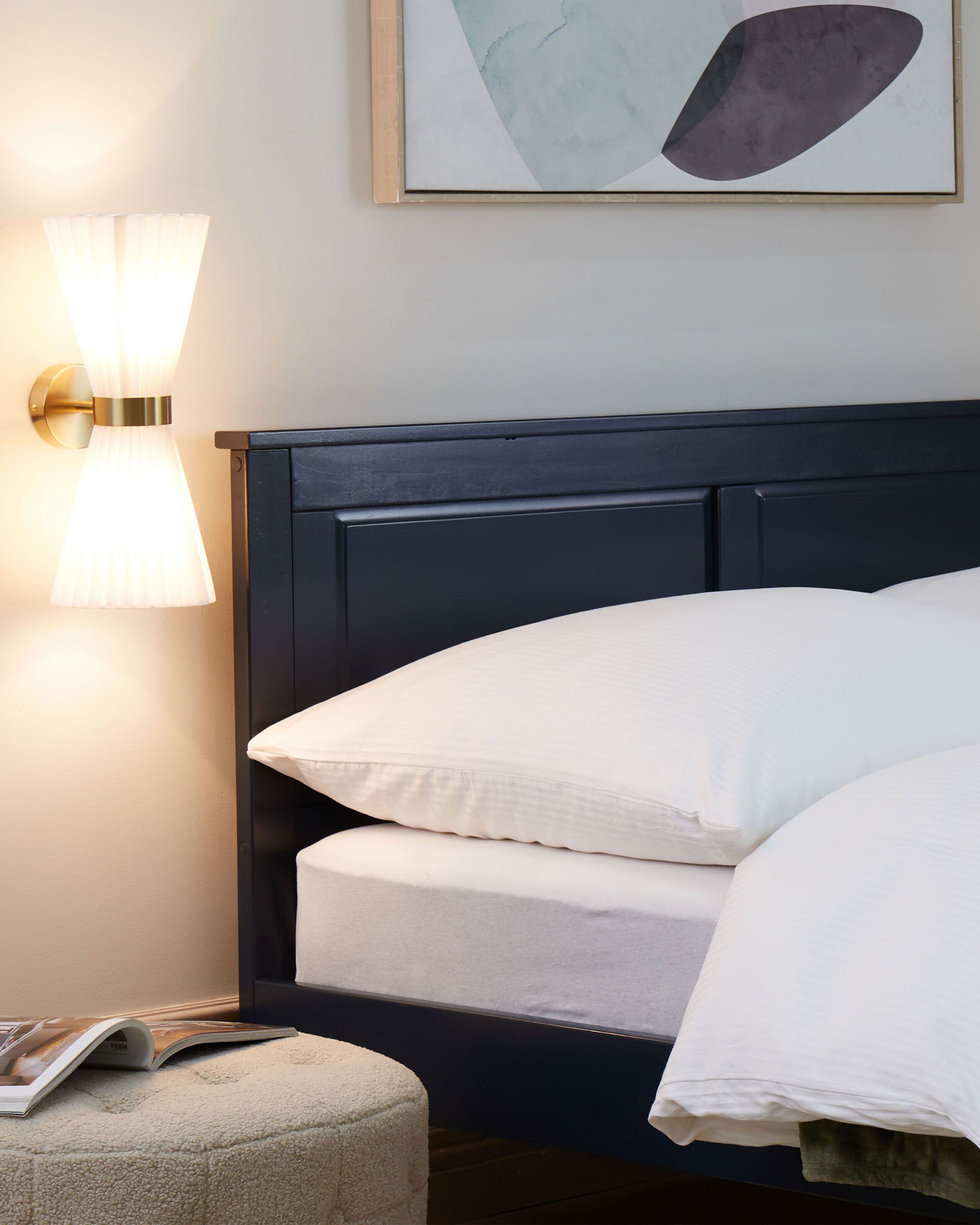 Moderni kohojuovainen valaisinsetti. Valaise olohuoneesi tai makuuhuoneesi näillä eleganteilla seinävalaisimilla. Korkealaatuisesta puuvillasta ja raudasta valmistetut valaisimet ovat erittäin tyylikkäitä ja kestäviä. Ne täydentävät täydellisesti kaikkia sisustuksia, perinteisistä moderneihin. Valaisimet eivät vaadi erityistä ylläpitoa pysyäkseen hyväkuntoisina useita vuosia.