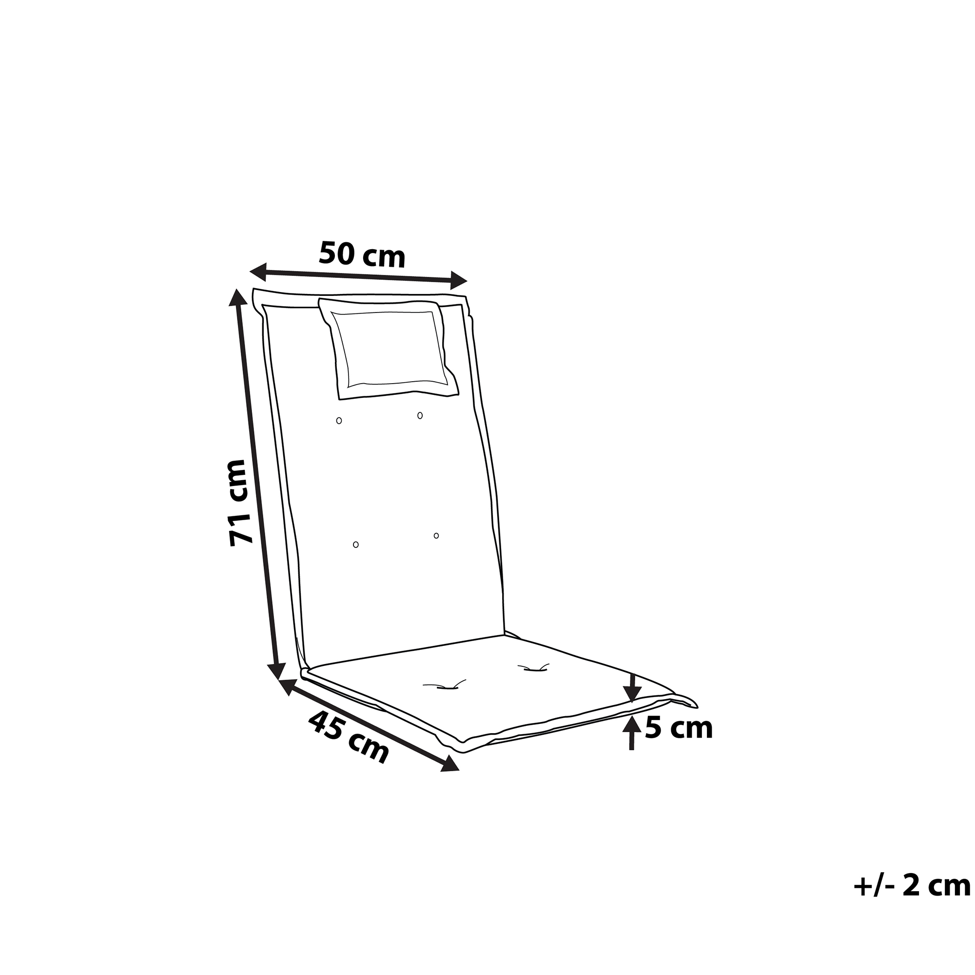 Selkä- ja istuintyyny ulkotilan tuoliin. Tämä tyylikäs ja erittäin mukava pehmuste takaa rennon loikoilun lepotuolissa. Kiitos sen likaahylkivän päällisen se on erittäin helppo pitää puhtaana, sillä voit pyyhkiä roisketahrat helposti pois. Saumat ovat huolellisesti viimeistelty ja hyvin huomaamattomat. Upea ja mukavuutta tuova tuote kaikille auringonpalvojille!