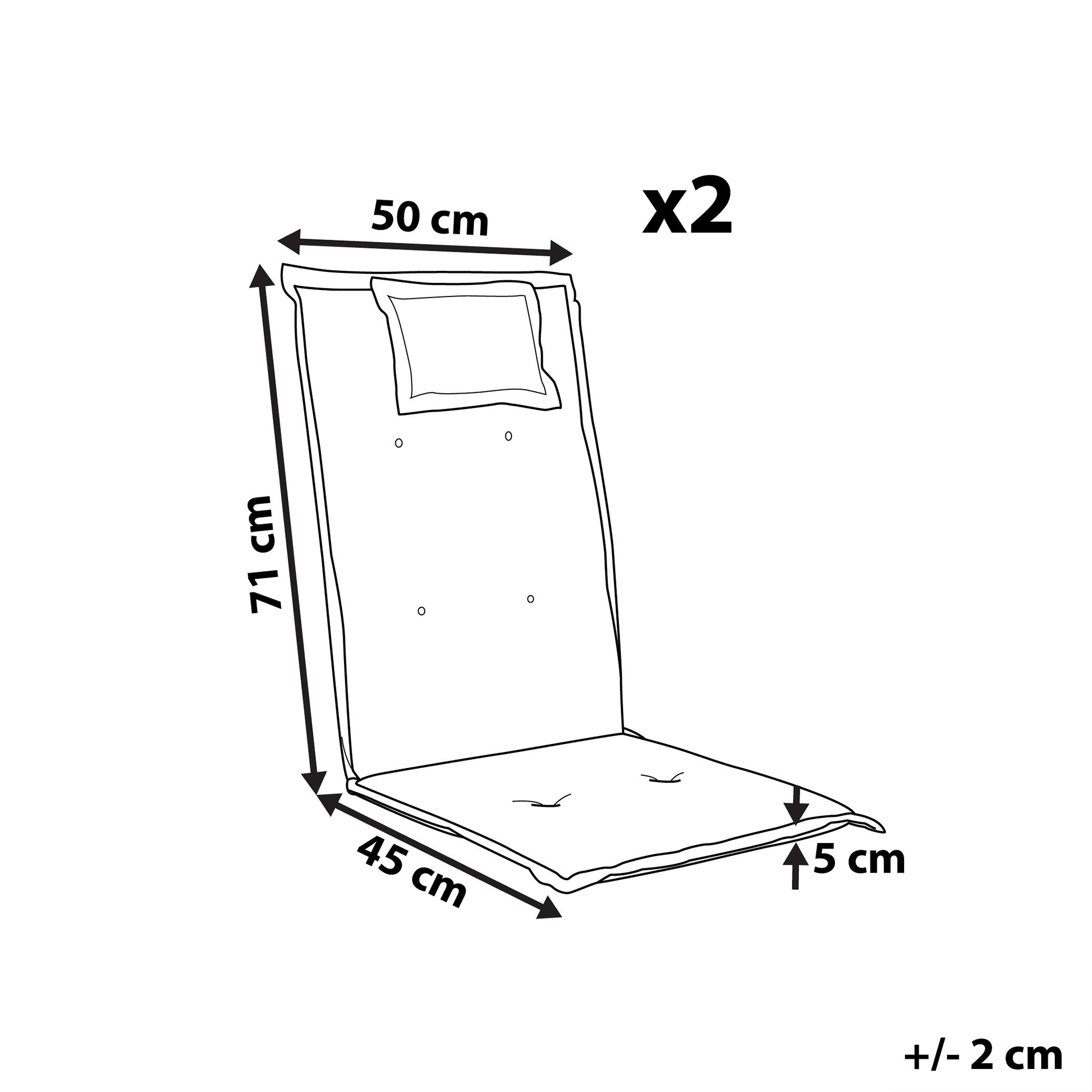 Selkä- ja istuintyynysetti ulkotilan tuoleihin. Tämä tyylikäs ja erittäin mukava pehmustesetti takaa mukavan oleskelun. Kiitos likaahylkivän päällisen, pehmuste erittäin helppo pitää puhtaana, sillä voit pyyhkiä roisketahrat helposti pois. Saumat ovat huolellisesti viimeistelty ja hyvin huomaamattomat. Upea ja mukavuutta tuova tuote ulkona rentoutumiseen.