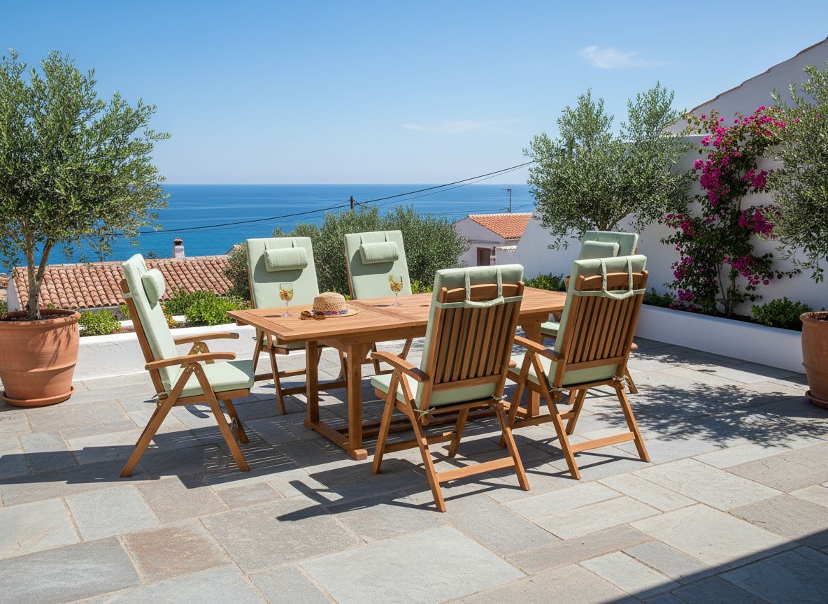 Puutarhatuolin pehmustettu tyynysetti siteillä. Tämä erittäin miellyttävä puutarhatuolin pehmustesetti sisältää kuusi tyynyä, jotka pehmustavat sekä selkänojan että istuinosan ja tuovat tuoleihin lisämukavuutta ja tyyliä. Laadukkaasta ja helppohoitoisesta polyesterikankaasta valmistetut päälliset ovat UV-säteilyn ja kosteuden kestäviä, mikä takaa, että väri säilyttää rikkaan sävynsä vuosia ja piristää ulkotilaa. Huolellisesti ja siististi viimeistellyt saumat ovat lähes näkymättömiä, ja pehmeä vaahtomuovitäyte takaa mukavuuden istuessa. Lisäksi tyynyissä on muhkea niskatuki sekä kätevät siteet, jotka pitävät ne tukevasti paikoillaan.