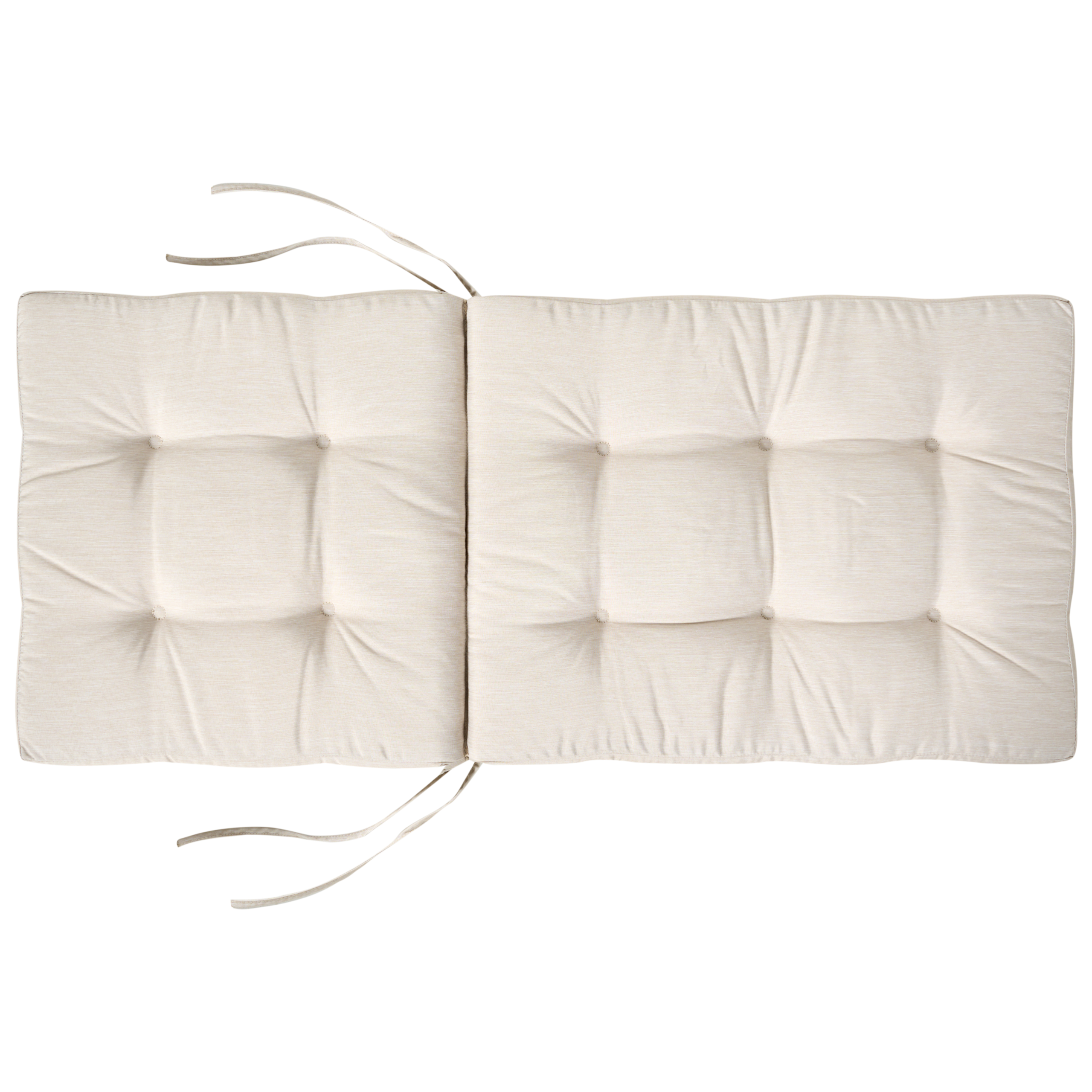 Tuftatut puutarhatuolien pehmusteet. Lisää ulkotiloihin ripaus mukavuutta ja tyyliä näillä käytännöllisillä puutarhatuolien pehmusteilla – täydellisiä tekemään tuoleista houkuttelevampia pitkiä istuskeluhetkiä varten. Yhdistetyt selkä- ja istuintyynyt on täytetty pehmeällä vaahtomuovilla, joka antaa loistavan tuen siellä, missä sitä eniten tarvitset. Kangas kestää kevyttä sadetta eikä haalistu helposti, joten se pysyy raikkaan näköisenä koko kauden ajan. Kätevät siteet pitävät pehmusteet tukevasti paikoillaan myös tuulisina päivinä.