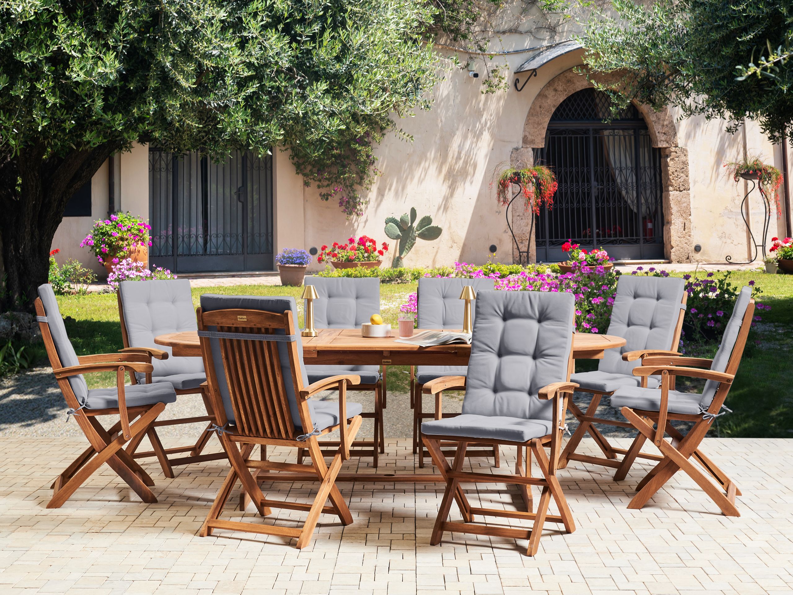Ominaisuudet: Paksusti pehmustettu mukavuuden takaamiseksi, Koristeellinen mutta käytännöllinen, Tuo lämpöä ulkotilaan, Vedenpitävä korkeatasoisten materiaalien ansiosta, UV-kestävyys 6 (ISO 105-B02)