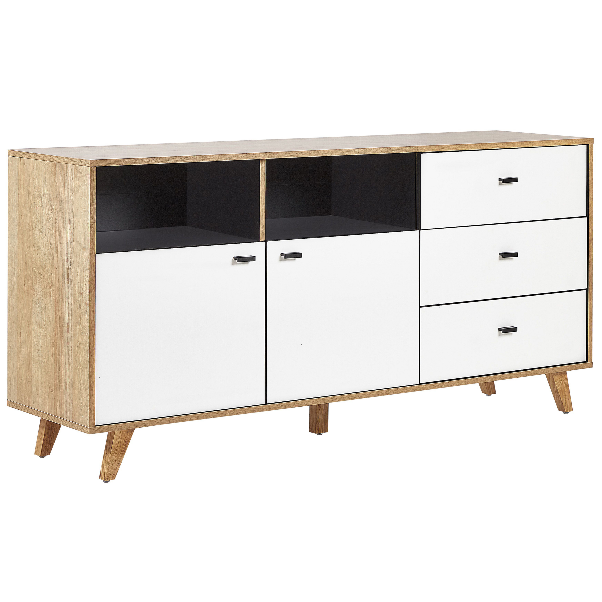 Skandinaavinen senkki hyllyillä. Kätevä sivupöytä tai tv-taso, joka tarjoaa sinulle säilytystilaa ja hurmaa käytännöllisyydellään. Yksinkertainen muotoilu ja väritys takaavat että pöytä sopii huoneeseen kuin huoneeseen. Sopii erityisen hyvin moderniin ja minimalistiseen sisustukseen.