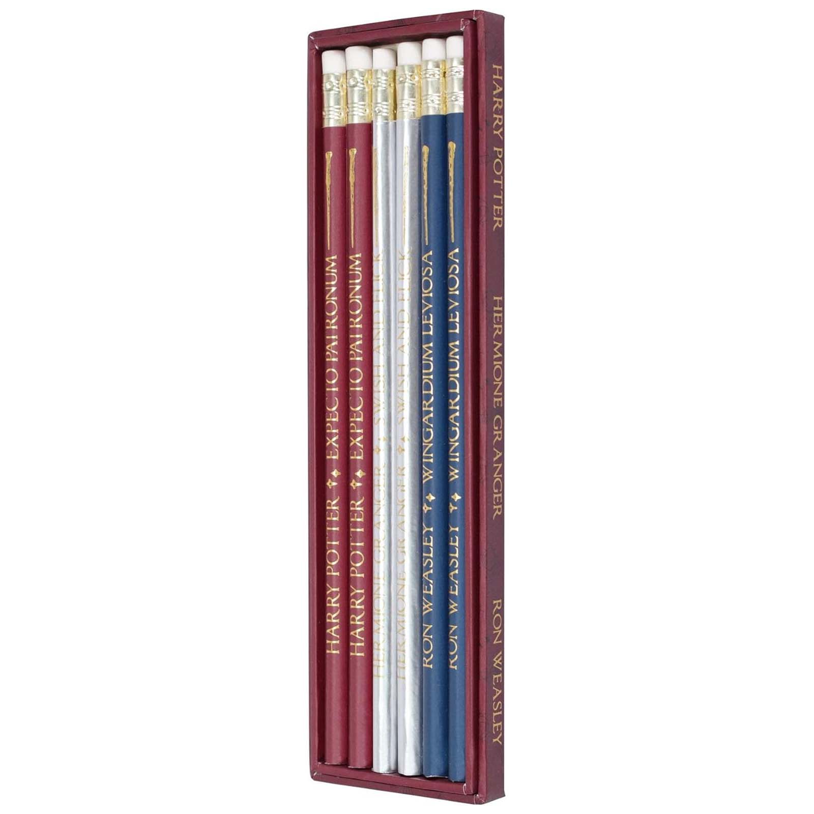 Tämä Harry Potter -setti sisältää 6 puukynää, jotka on koristeltu kolmella teemakuvioinnilla: Harry Potter Expecto Patronumilla, Hermione Granger ja Ron Weasley Wingardium Leviosalla. Jokainen kynä on noin 20 cm pitkä, ja siinä on valkoinen pyyhekumi, joka on kiinnitetty päähän metallikärjellä. Tämä koristeellisessa pahvilaatikossa esitelty setti on ihanteellinen lahja kirjoittamiseen ja piirtämiseen, jossa on maaginen kosketus.
