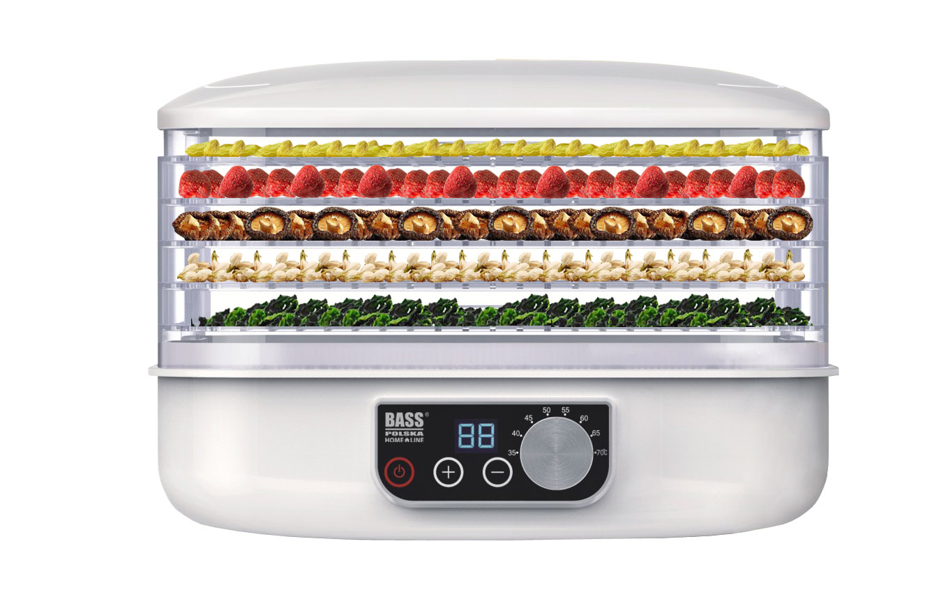 Sieni-, hedelmä- ja vihanneskuivuri 250 W, säädettävät tarjottimet