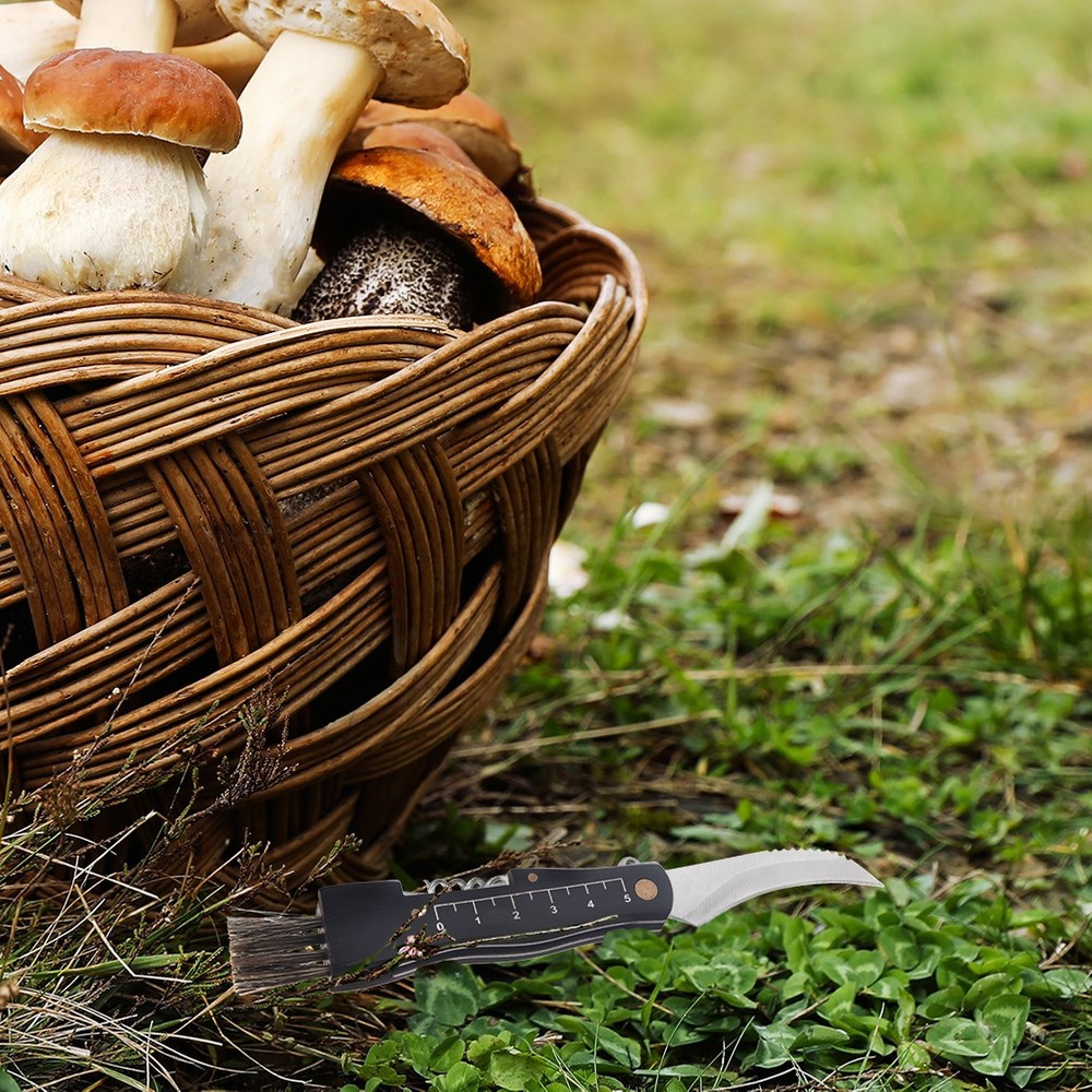 HYÖDYLLINEN - Tässä sieniveitsessä on erityisesti profiloitu 5,5 cm:n terä. Terän avulla sienistä voi tarttua ja esipuhdistaa. Harja sopii täydellisesti hiekan tai mullan poistamiseen sienistä. Lisäksi kahvan 1–5 cm:n asteikko mahdollistaa kerättyjen näytteiden halkaisijan arvioimisen.