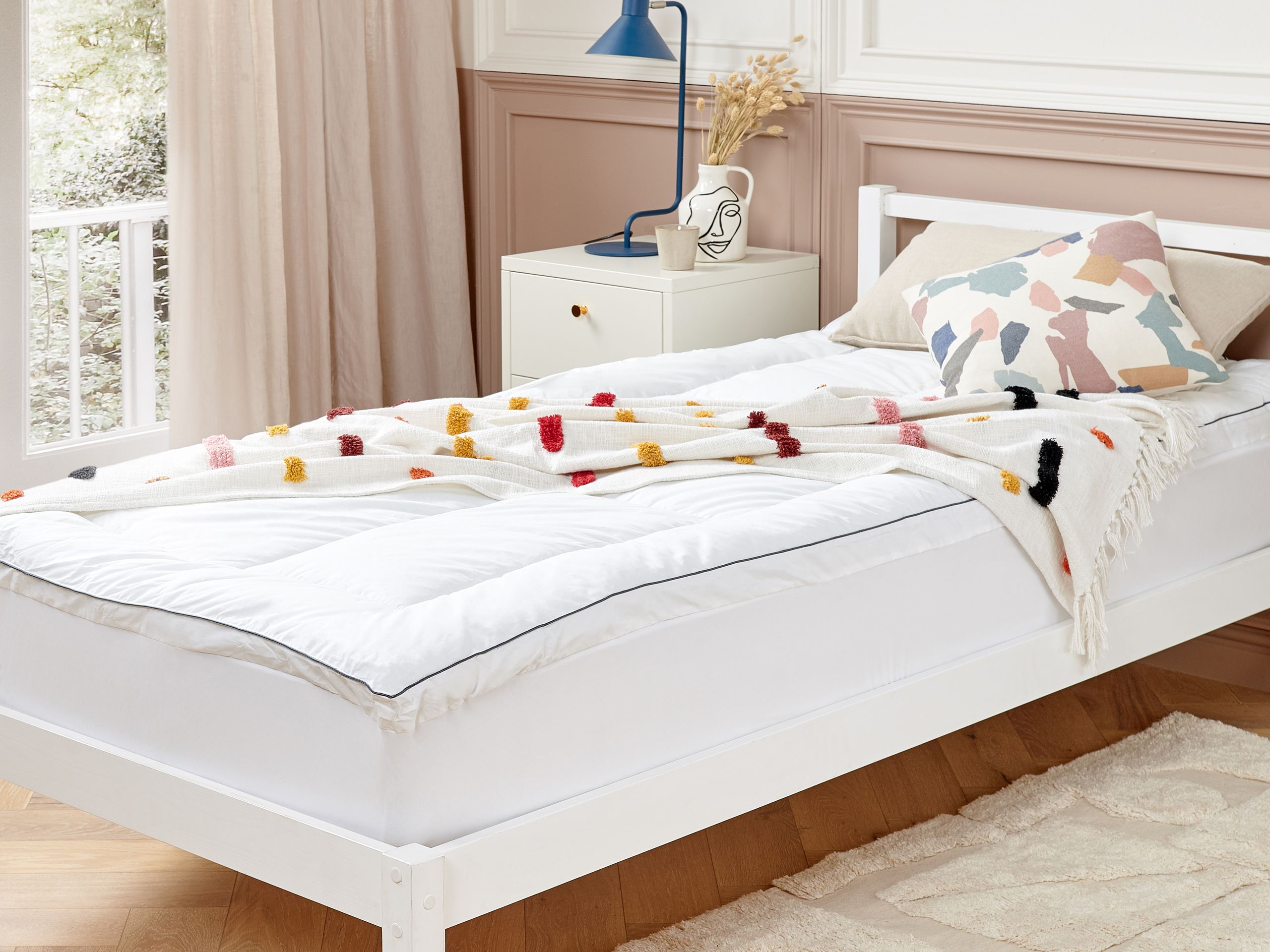 Petauspatja japara-puuvillapäällisellä. Tämä laadukas sijauspatja lisää sängylle ylimääräisen kerroksen pehmeyttä ja parantaa yleistä mukavuutta ilman, että nykyistä patjaa tarvitsee vaihtaa. Se on täytetty polyesterillä ja mikrokuidulla, jotka antavat lempeää tukea ja lievittävät painepisteitä, mikä helpottaa rentoutumista. Taskumainen rakenne pitää täytteen tasaisesti jakautuneena, mikä estää kasautumisen ja ylläpitää yhtenäistä mukavuutta koko sijauspatjassa. Kestävästä ja pehmeästä luonnontekstiilistä, japara-puuvillasta valmistettu päällinen on viimeistelty tyylikkäillä hopeisilla satiinireunoilla. Lisäksi sijauspatja on allergiaystävällinen ja konepestävä, joten se on helppo ylläpitää vuosien mittaan.