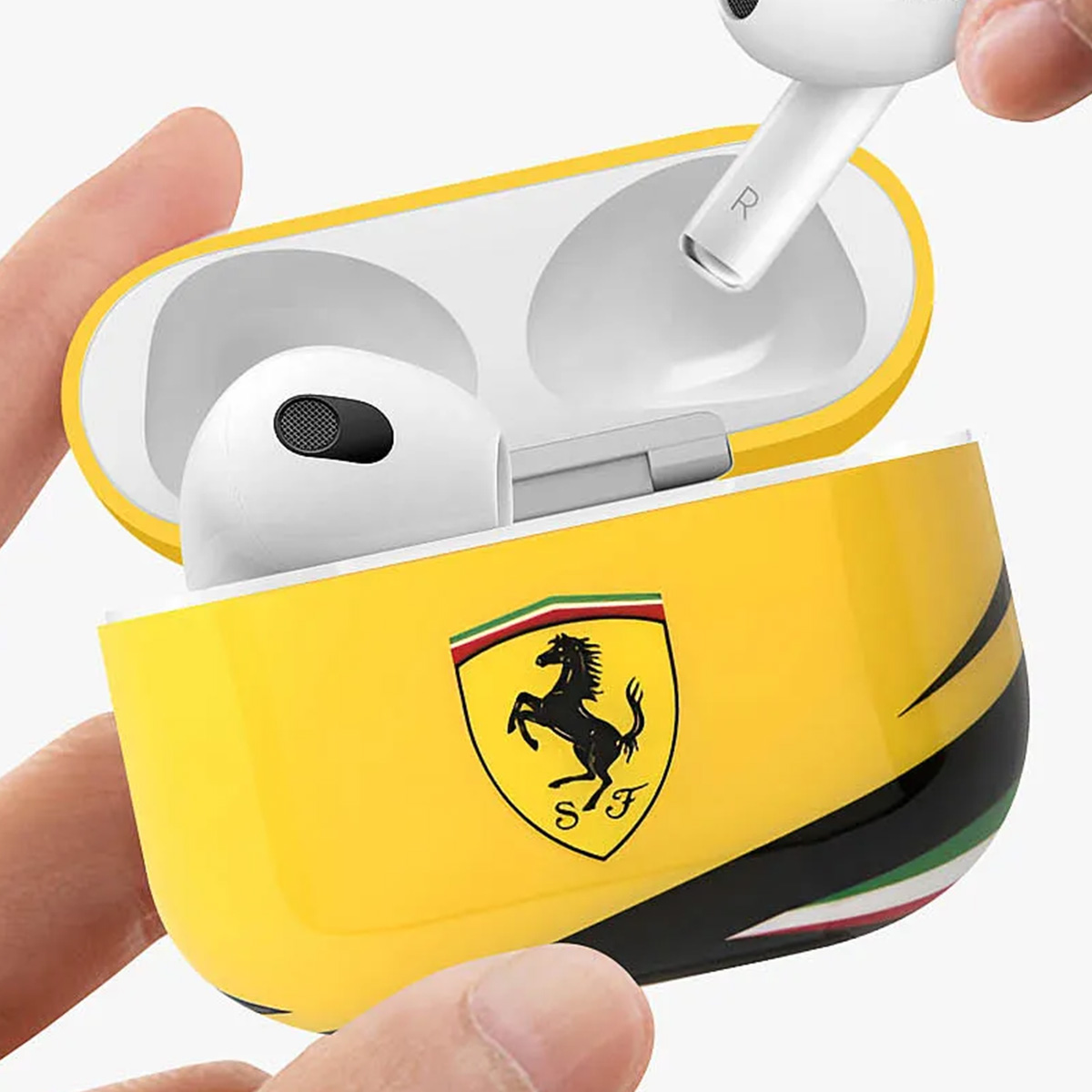 Tämä Ferrarin Airpods 3 -kotelo vie sinut kaikkialle. Tämä kotelo tarjoaa optimaalisen suojan jokapäiväisiä kolhuja ja putoamisia vastaan. Sen kaarevuus, viittaus italialaiseen alkuperään ja keltainen väri symboloivat kaikki merkin historiaa, joka on kestänyt aikaa. Kotelossa on rengas, jotta voit kantaa sitä turvallisesti.