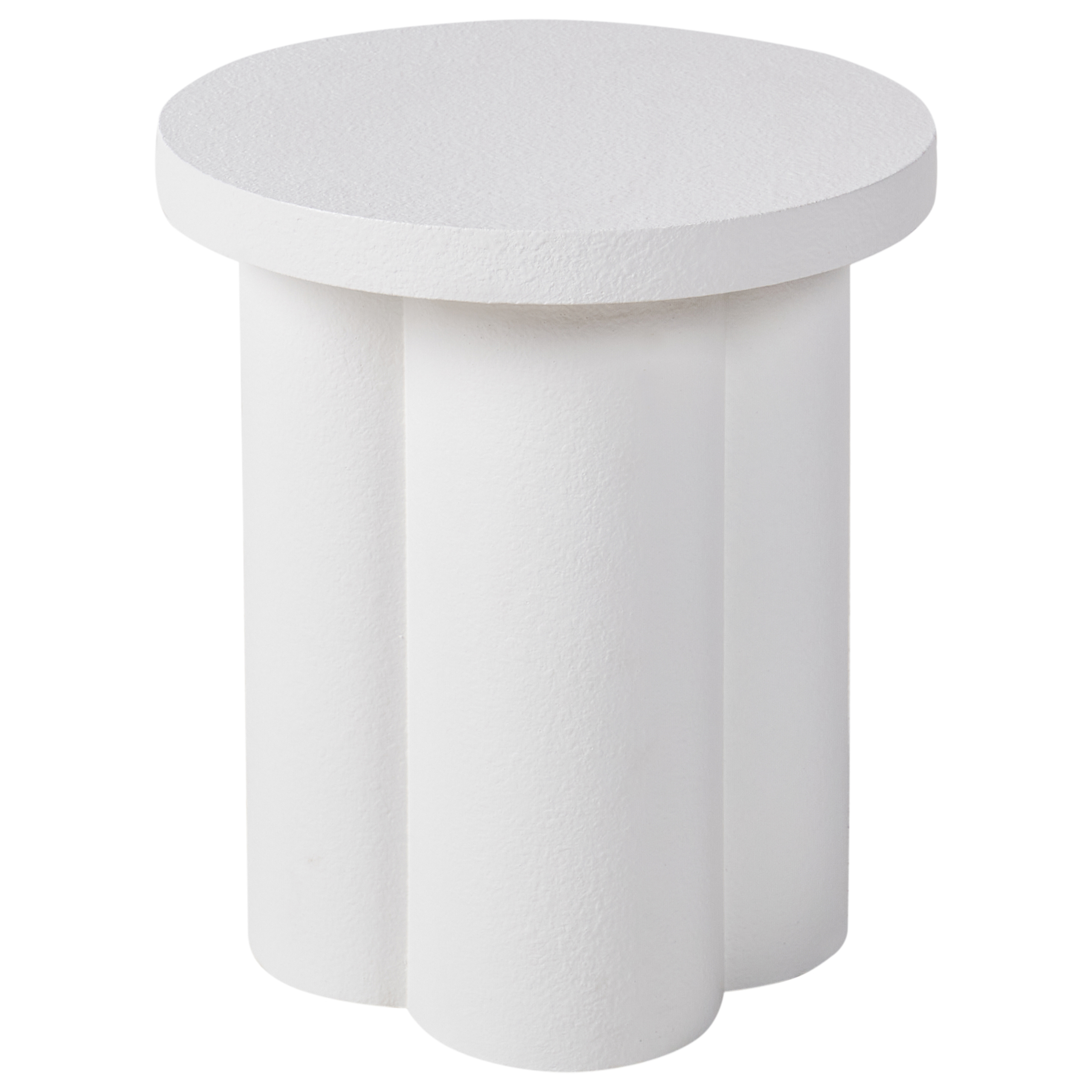 Minimalistinen pyöreä pöytä. Tämä ainutlaatuisesti muotoiltu sivupöytä sopii täydellisesti aksenttipöydäksi tai toiminnalliseksi sisustuselementiksi. Se on valmistettu kestävästä MDF-levystä ja viimeistelty karhealla, teksturoidulla pinnalla, joka korostaa sen modernia ilmettä ja lisää tyylikkyyttä. Orgaaninen, epäsymmetrinen muoto ja sylinterimäiset jalat tuovat veistoksellisuutta mihin tahansa tilaan.