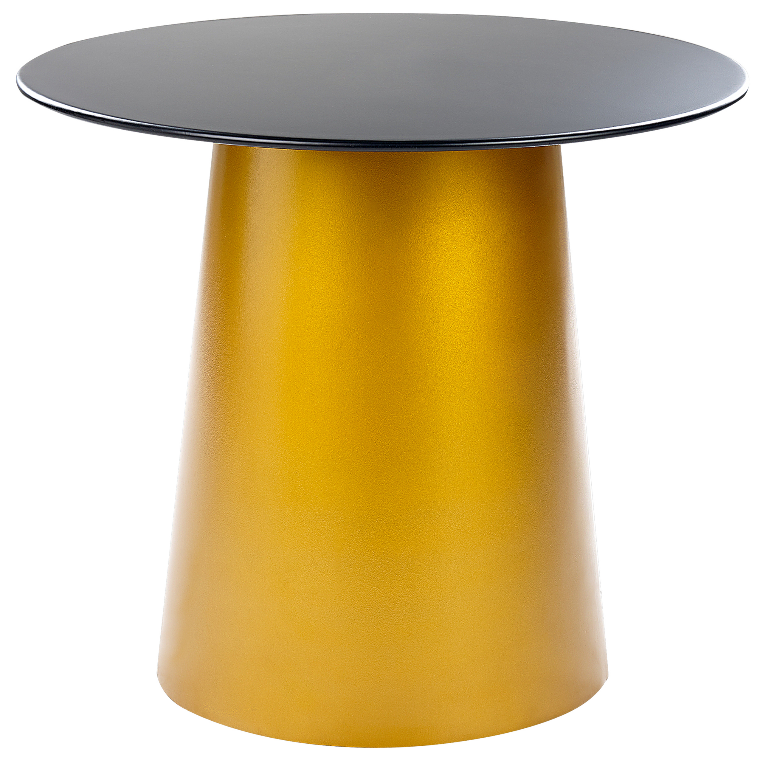Tyylikäs pyöreä sivupöytä. Luo sisustukseesi ainutlaatuinen tunnelma tällä käytännöllisellä ja katseita keräävällä sivupöydällä. Se on valmistettu kokonaan vankasta mutta kevyestä raudasta, jonka ansiosta sitä on helppo siirtää paikasta toiseen. Suuri, kullanvärinen jalka toimii glamourisena korosteena, joka kohentaa sisustusta kuin sisustusta. Musta, pyöreä pöytälevy tarjoaa loistavasti tilaa kahvikupille ja erilaisille sisustustarvikkeille.