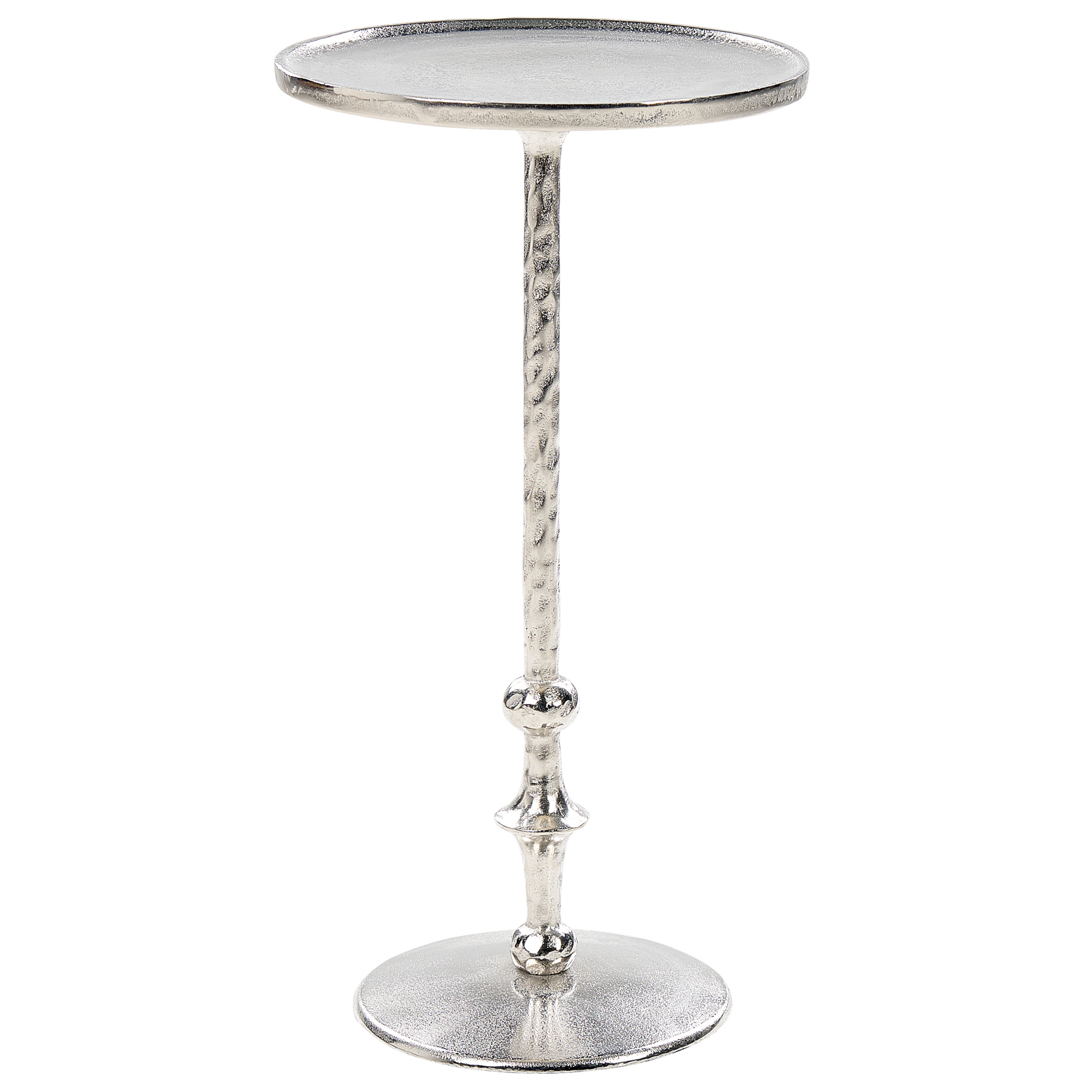 Moderni pyöreä sivupöytä. Valokuvasi, kasvisi tai koristeesi näyttävät fantastisilta tälle tyylikkäälle sivupöydälle asetettuna. Sen koristeellinen jalka ja pyöreä pöytälevy on valmistettu alumiinista, jonka hopeanvärinen kiiltävä viimeistely tekee sivupöydästä katseita keräävän korosteen. Se näyttää erittäin hyvältä sohvan viereen asetettuna, mutta sopii myös eteiseen tai makuuhuoneeseen. Pidä tarpeelliset esineet käden ulottuvilla tällä perinteistä ilmettä ja modernia muotoilua yhdistelevällä sivupöydällä, joka tuo runsaasti luonnetta sisustukseen kuin sisustukseen.