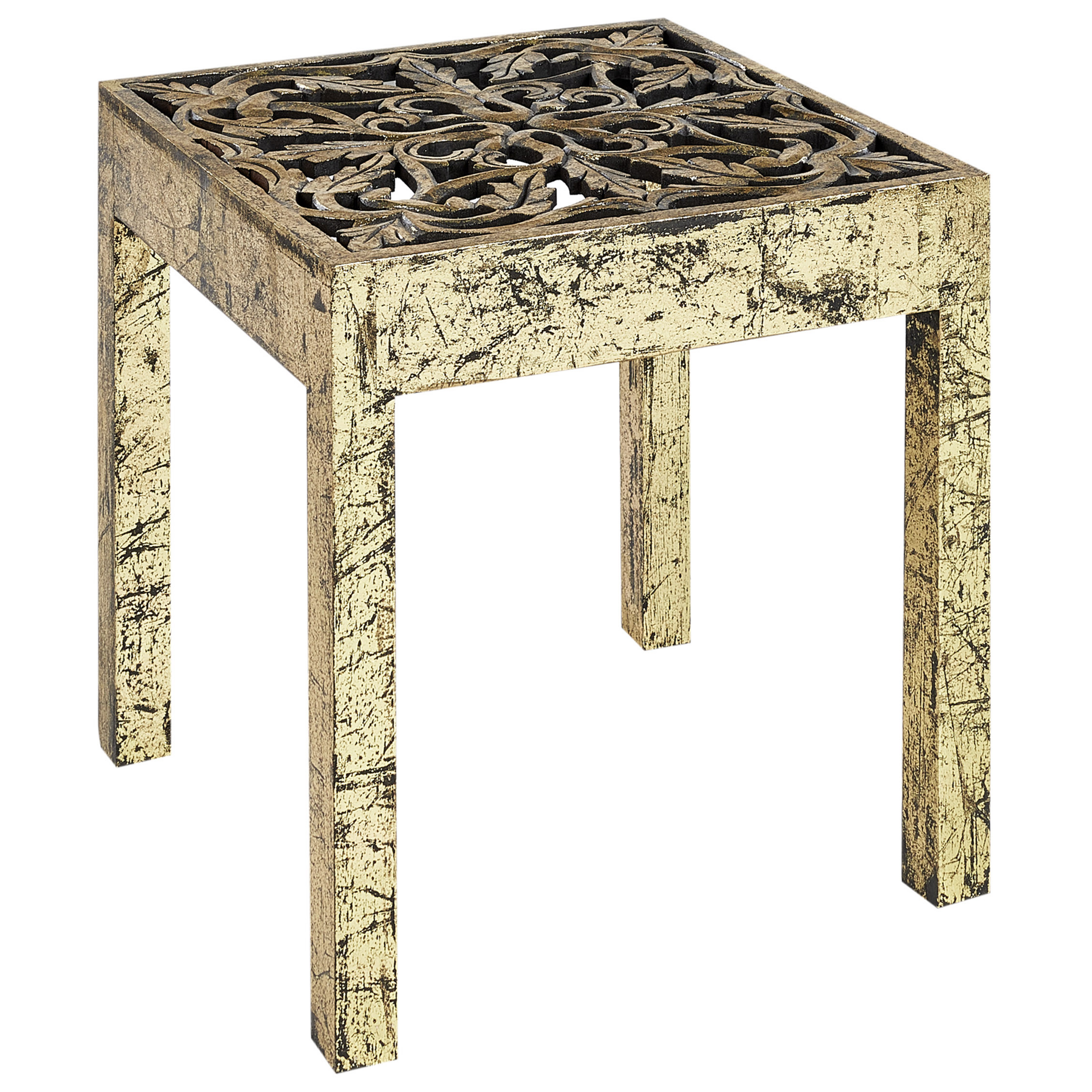 Koristeellinen puinen sivupöytä. Lisää kosketus vintage-tyyliä sisustukseen tällä todella koristeellisella sekä käytännöllisellä sivupöydällä. Kullan värinen viimeistely kulutetulla pinnalla on kaunis lisä yhdessä koristeellisella pöytätasolla monenlaiseen rustiikkiseen tai vintage-tyyliseen sisustukseen. Aseta pöydälle olohuoneessa esimerkiksi kukkamaljakko tai suosikkikasvisi.