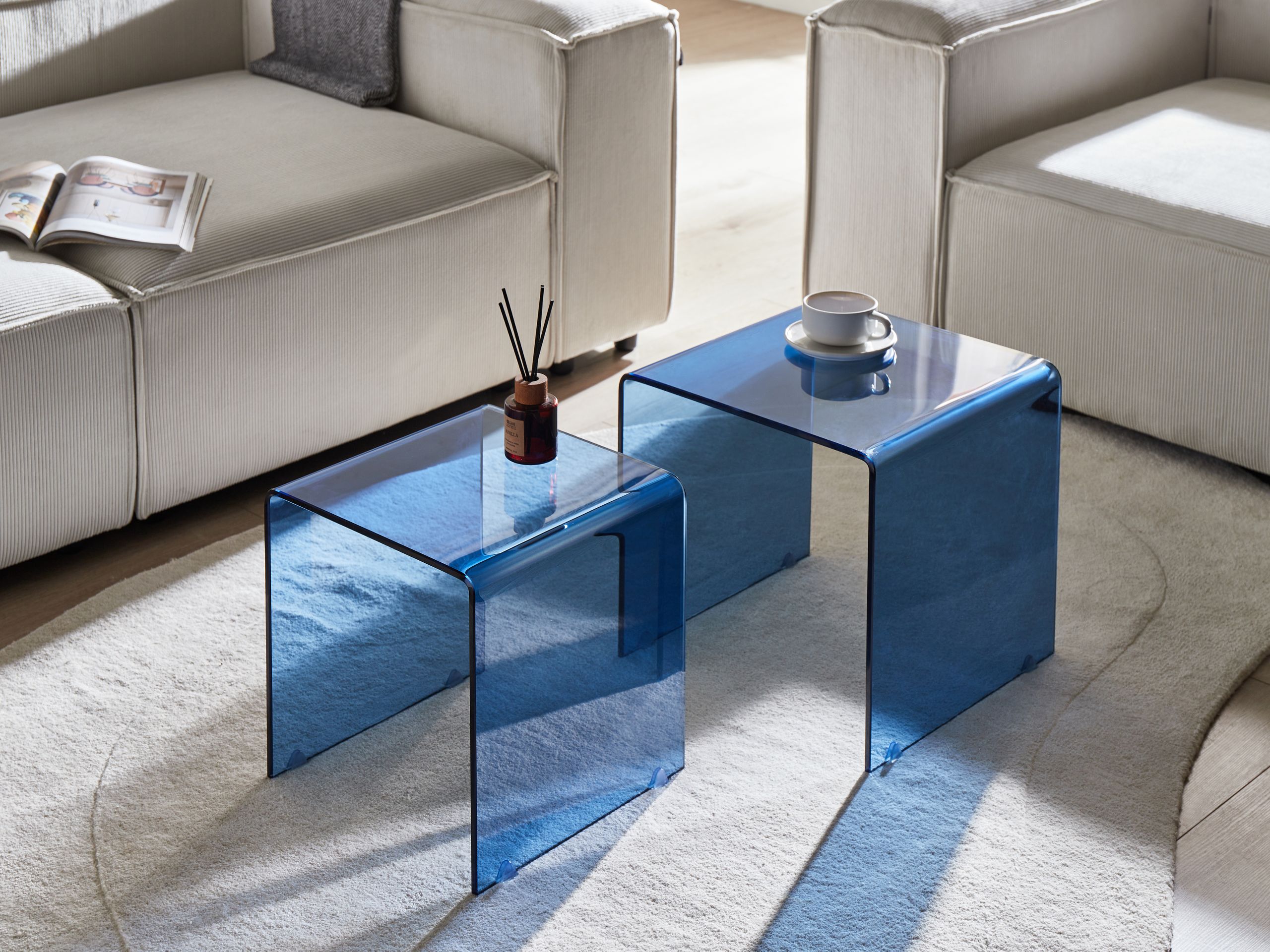 Sivupöytäsetti 2 kpl KENDALL karkaistu lasi Sininen
