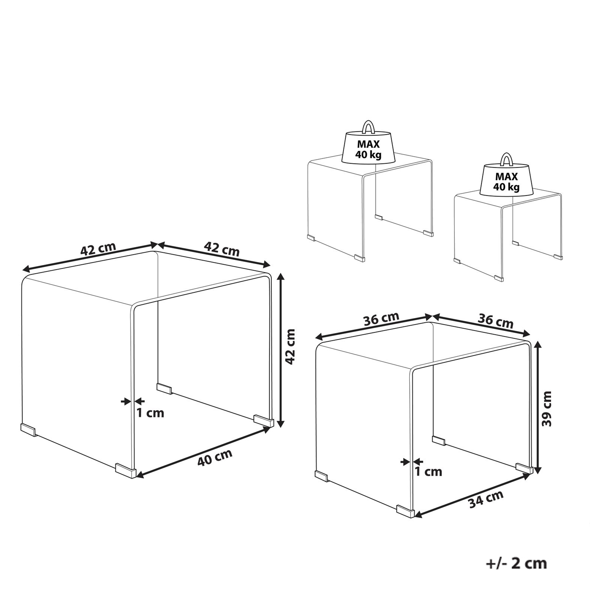 Minimalistinen läpinäkyvä sarjapöytä. Tämä kahden minimalistisen sivupöydän setti sopii täydellisesti kohottamaan mitä tahansa modernia, nykyaikaista tai skandinaavista sisustusta. Korkealaatuisesta karkaistusta lasista valmistetut pöydät on viimeistelty sileillä pinnoilla ja tyylikkäillä pyöristetyillä kulmilla. Ne ovat osittain läpinäkyviä, mikä tekee niistä kauniin yksityiskohdan jokaiseen olohuoneeseen.