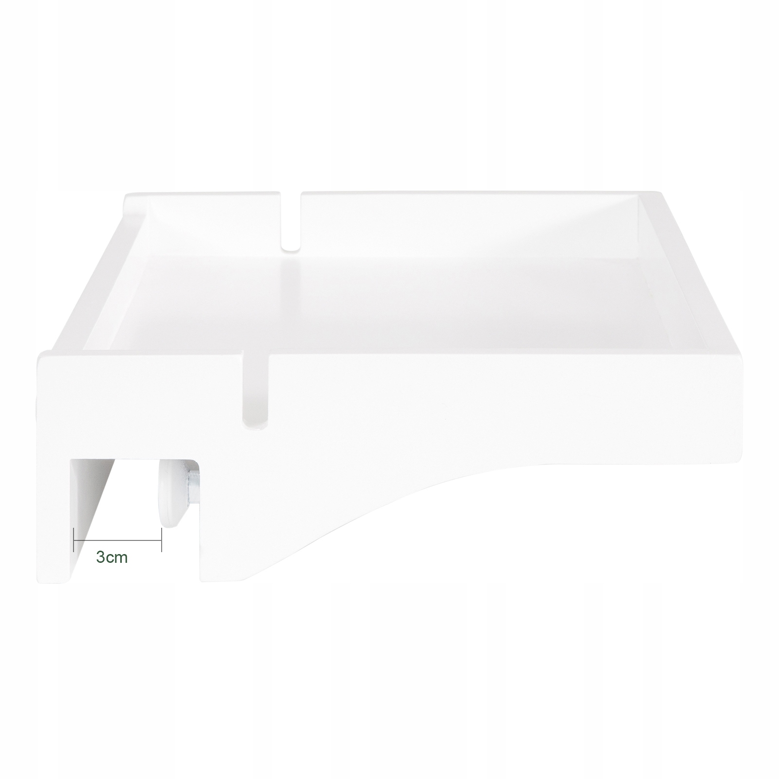 Erityisesti suunniteltu kaapeliväli pitää läppärin tai puhelimen laturin turvallisesti kiinni helpon käytön mahdollistaen. Sivupöytä kiinnittyy sängyn runkoon (enintään 5 cm leveä reuna) – vain koukista se paikalleen ja kiristä 2 ruuvia takaa.