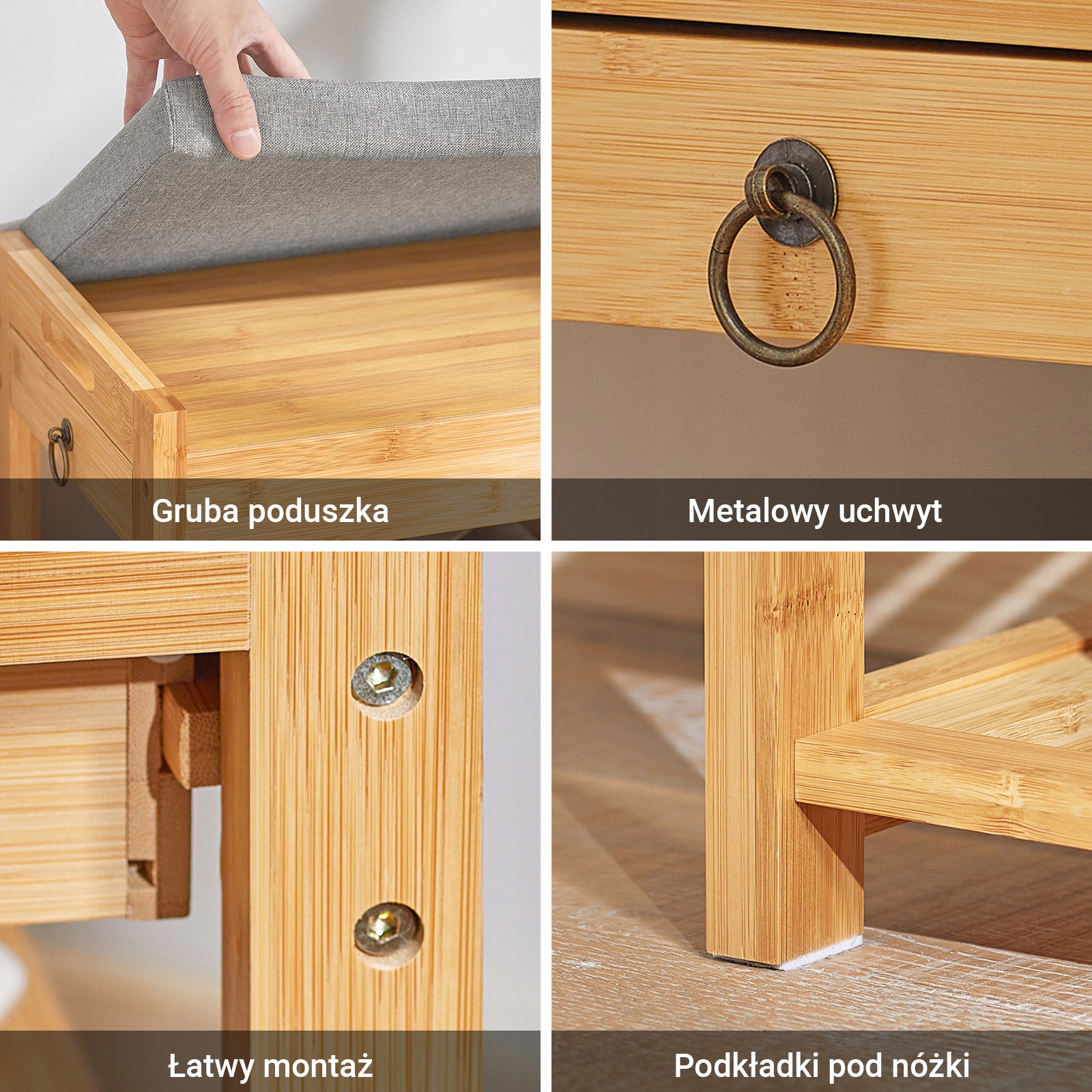 SoBuy Eko säilytyspenkki bambulla FSR49-N tyynyllä