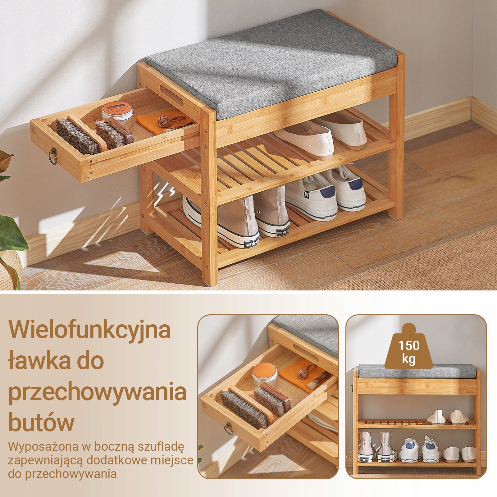 SoBuy-kenkäpenkki yhdistää tyylikkään pohjoismaisen designin, käytännöllisyyden ja kestävän kehityksen. Tämä monikäyttöinen huonekalu toimii sekä trendikkäänä kenkäkaappina että mukana istumapenkkinä, täydentäen täydellisesti eteistäsi, olohuonettasi tai parveketta.