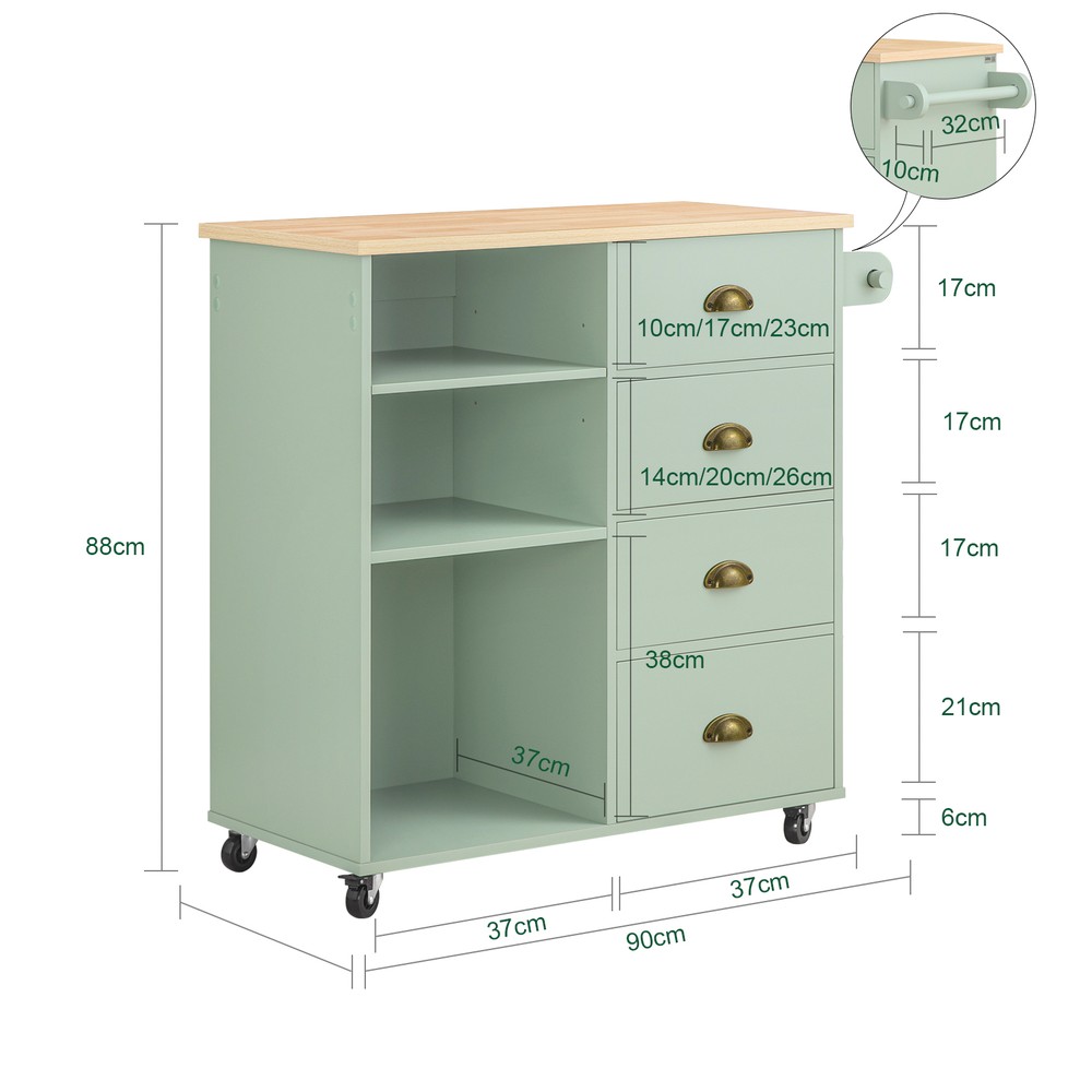 SoBuy-monitoimikeittiökärry tekee keittiöstäsi käytännöllisemmän ja ekologisemman. Tämä pohjoismaisen designin vaunu tarjoaa runsaan säilytystilan kolmella kätevällä laatikolla, irrotettavalla muovikorilla ja kahdella tilavalla hyllyllä. Kompakti 90x40x88 cm koko sopii erinomaisesti sekä koti- että ravintolakeittiöihin, jopa pienimpiin tiloihin.