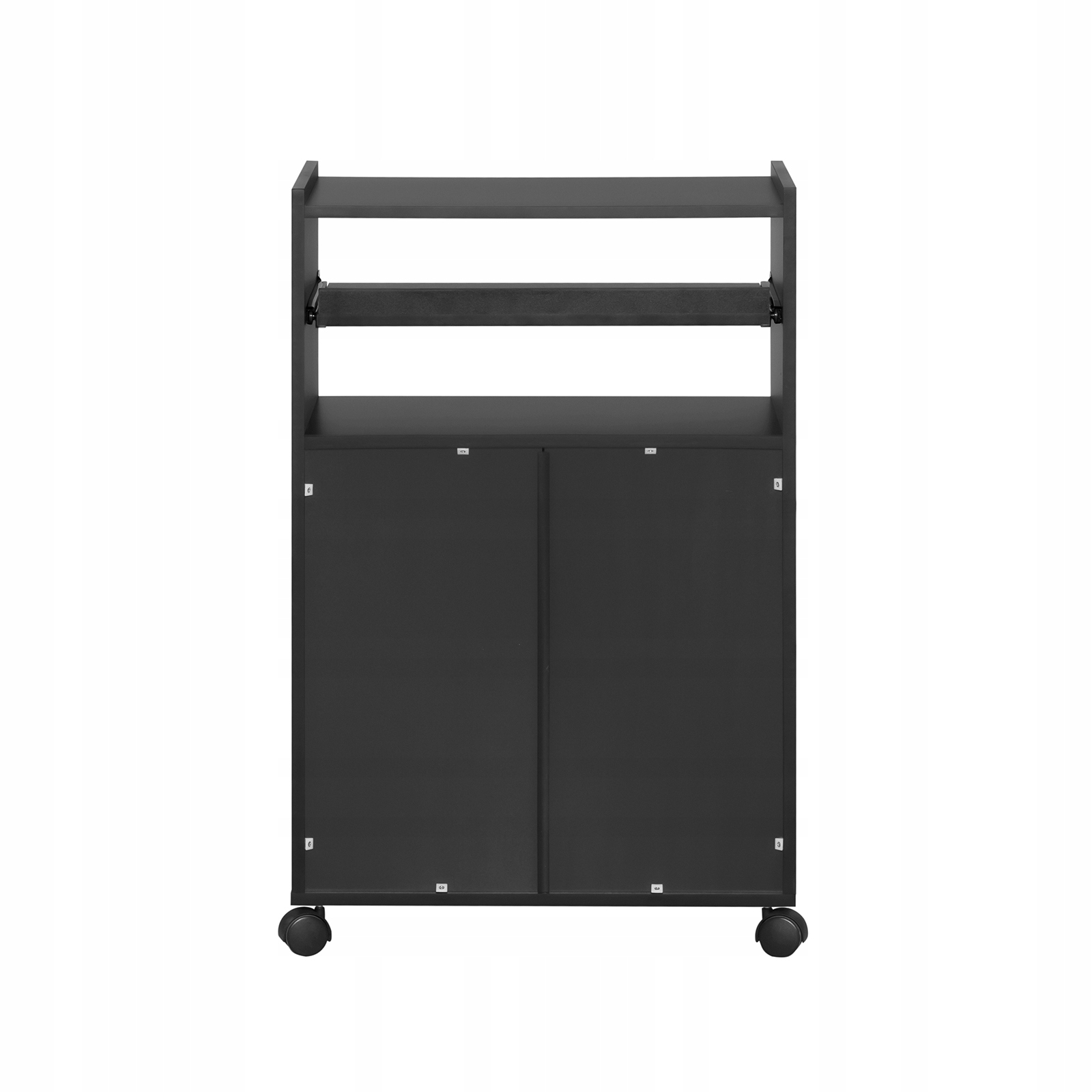 SoBuy:n tyylikäs ja käytännöllinen keittiövaunu tarjoaa runsaasti lisätilaa myös pienissä tiloissa. Tässä elegantissa ratkaisussa on kaksi hyllyä, yksi vetolaatikko sekä kaksiosainen kaappi, jotka tarjoavat joustavan säilytysratkaisun. 360° pyörivien pyörien ansiosta vaunua on helppo siirtää, ja kahdessa pyörässä on jarrut vakaata asettelua varten. Turvallisuuden takaamiseksi mukana toimitetaan seinäkiinnitystarvikkeet, jotka estävät kaatumisvaaran.