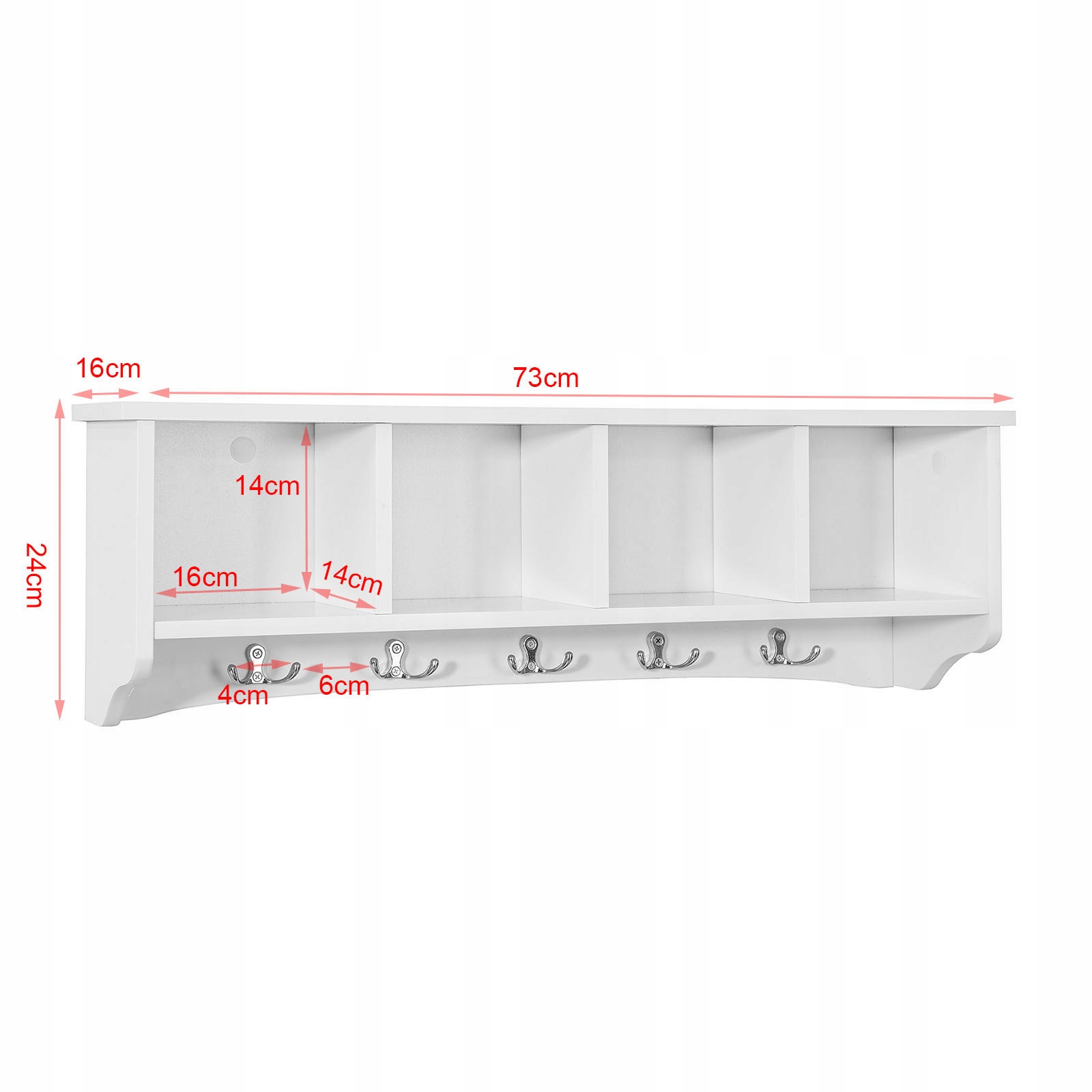 SoBuy FRG48-L-W seinäkoukkuhylly 5 koukkua, puukuitulev...