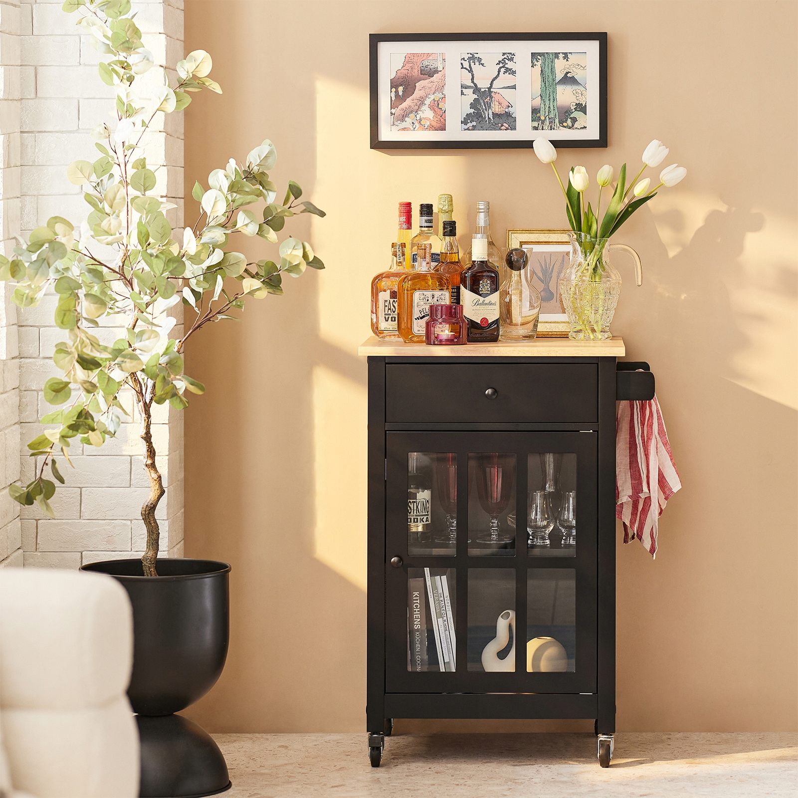 SoBuy Keittiökaappi pyörillä puukuitulevystä musta FKW98-SCH